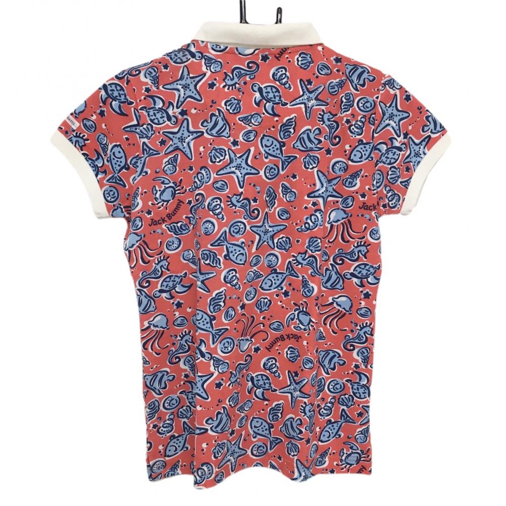 ジャックバニー 半袖ポロシャツ レッド×ネイビー 総柄 魚 ヒトデ レディース 0(S) ゴルフウェア Jack Bunny