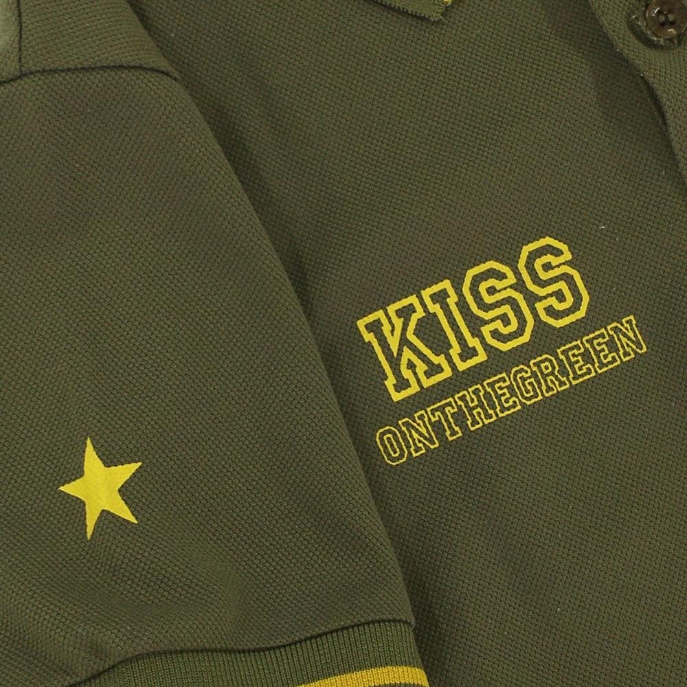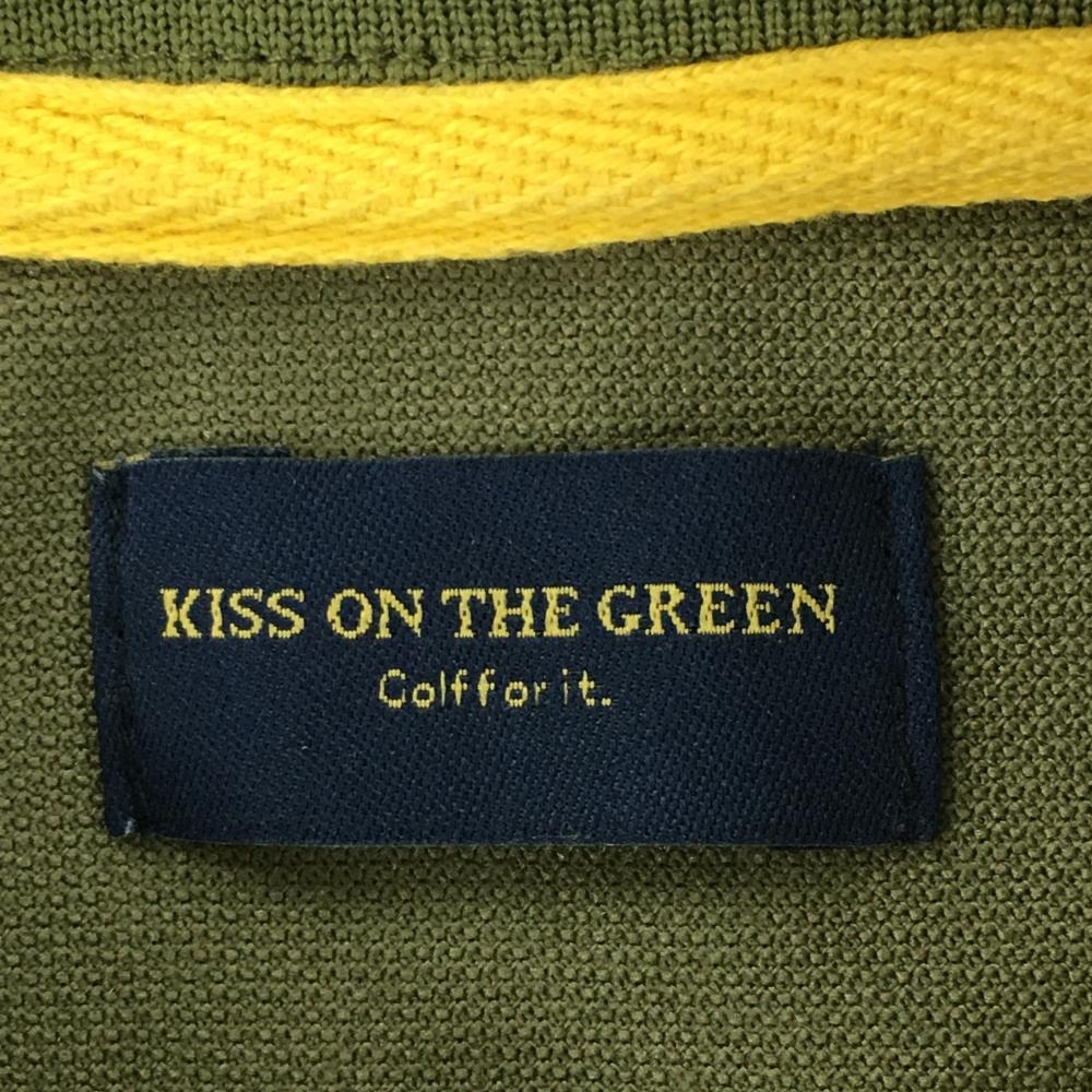 キスオンザグリーン 半袖ポロシャツ カーキ×イエロー ロゴプリント レディース 2(M) ゴルフウェア kiss on the green