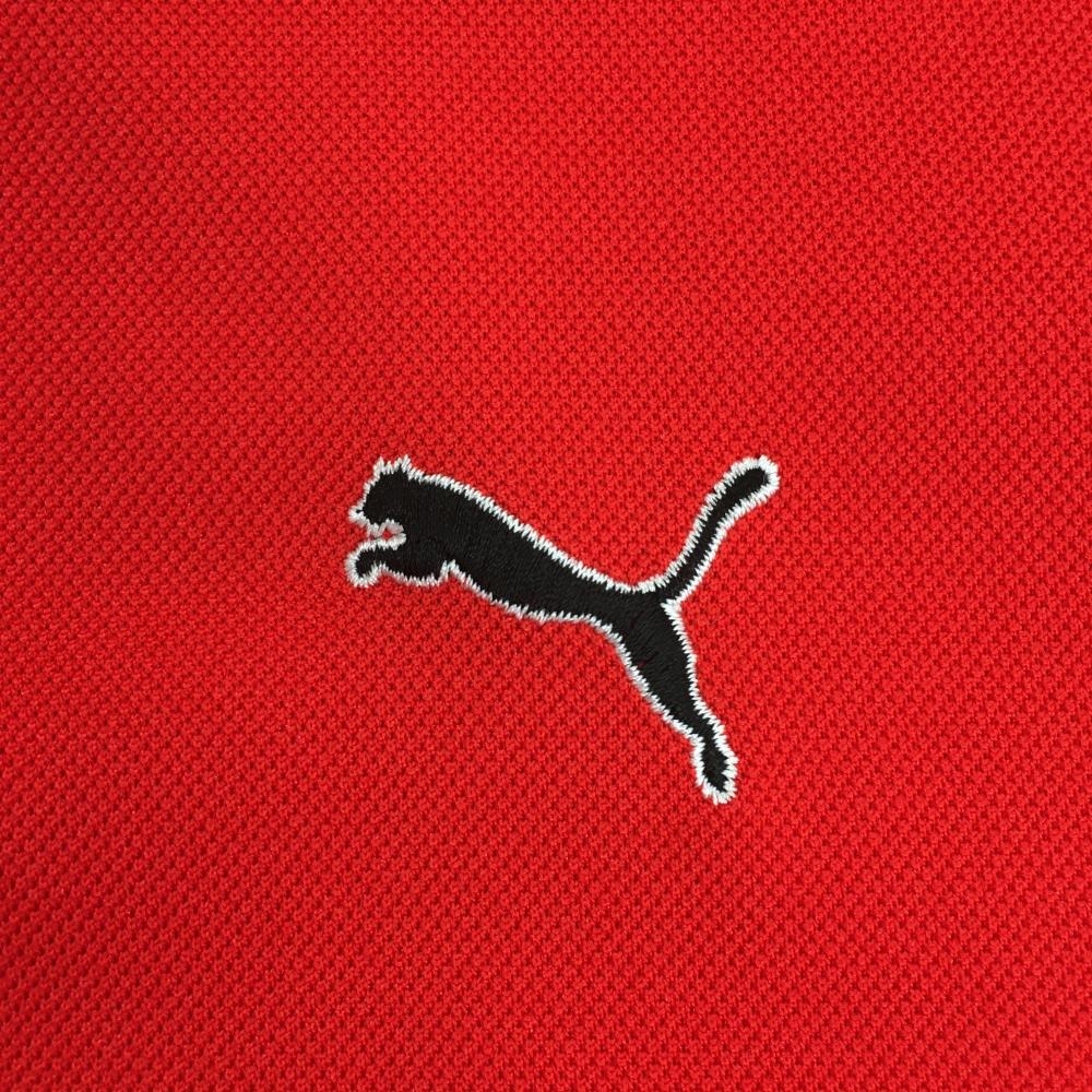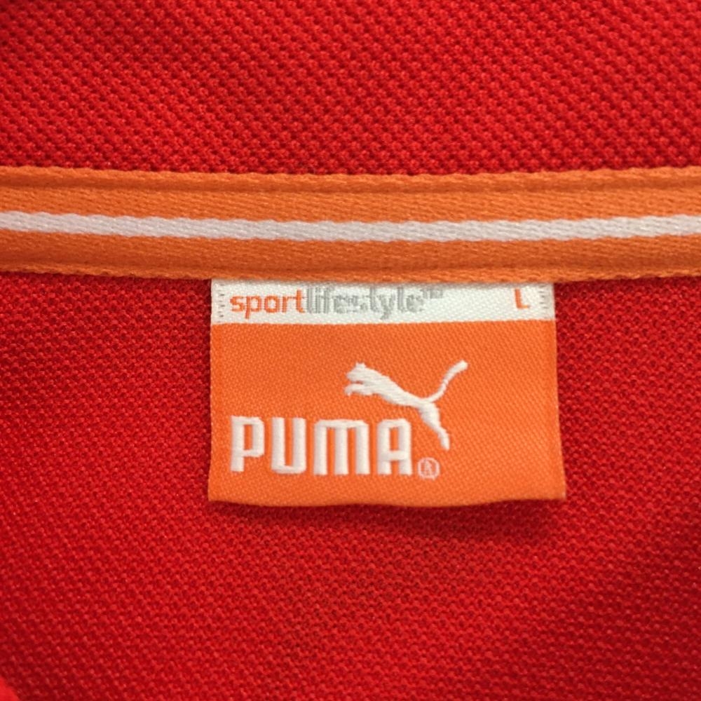 【美品】プーマ 半袖ポロシャツ レッド ボタンダウン 刺しゅう メンズ L ゴルフウェア PUMA