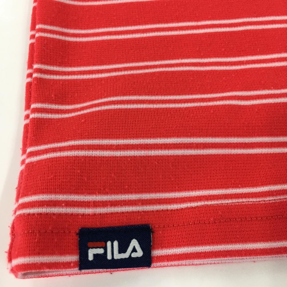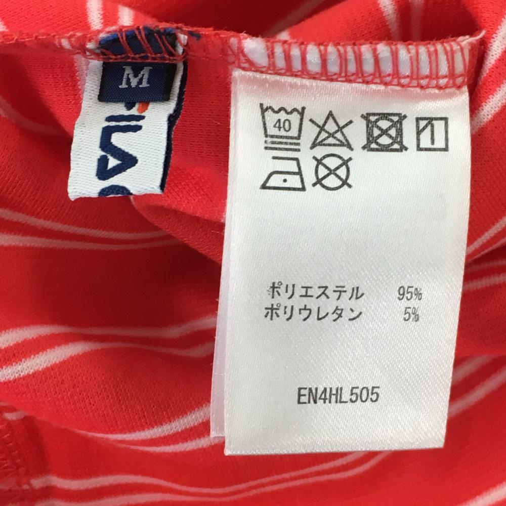 フィラゴルフ 長袖ハイネックシャツ レッド×白 ボーダー レディース M ゴルフウェア FILA GOLF
