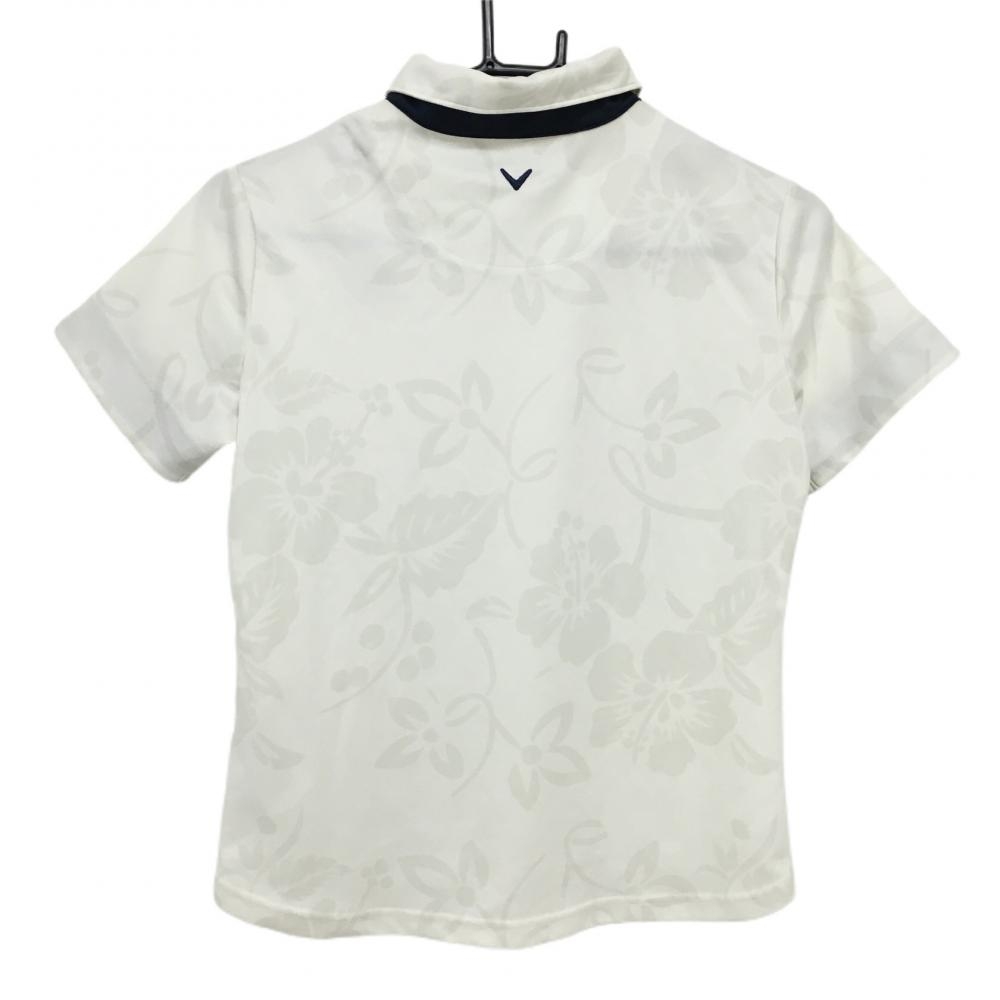 【美品】キャロウェイ 半袖ポロシャツ アイボリー×ライトグレー 花柄 ロゴ刺しゅう 腹部薄汚れ レディース M ゴルフウェア Callaway