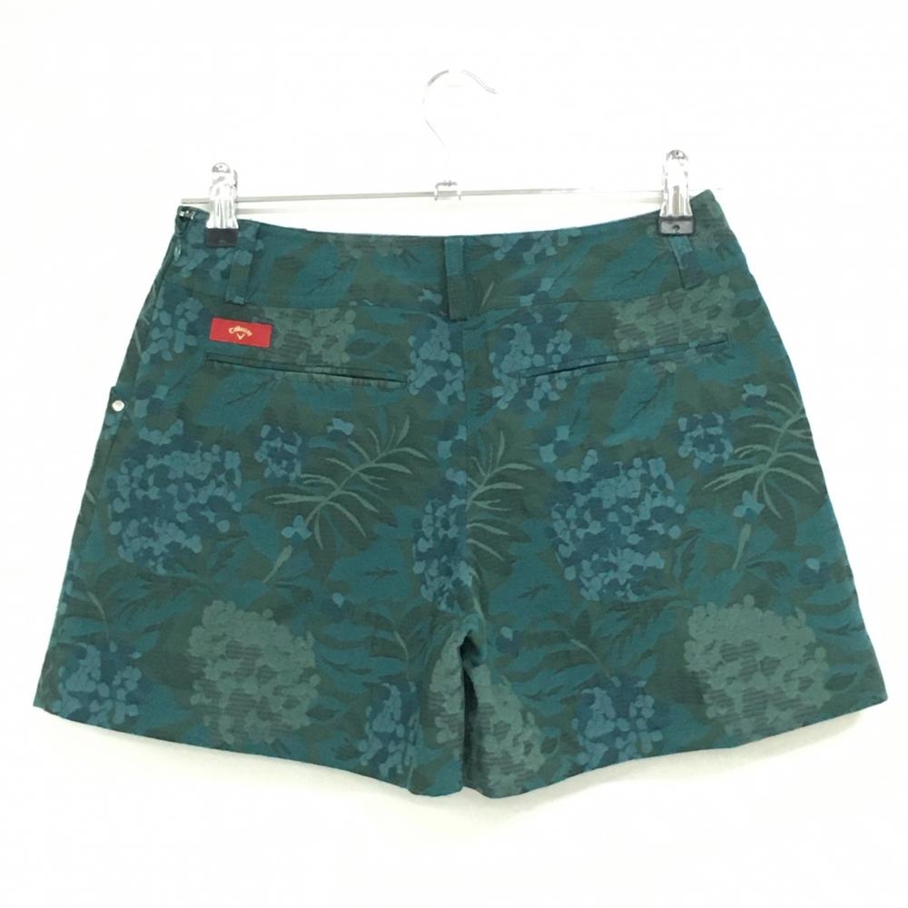 【美品】キャロウェイ レッドレーベル キュロットスカート グリーン リーフ柄織生地 レディース S ゴルフウェア Callaway