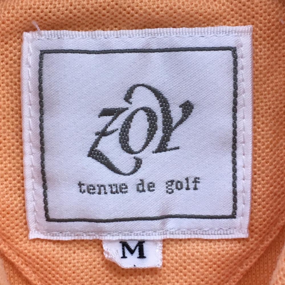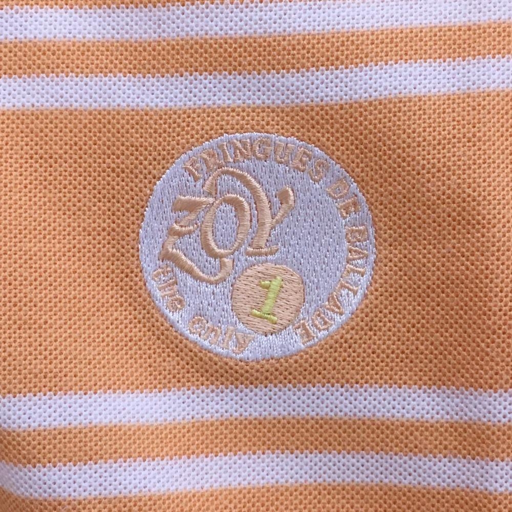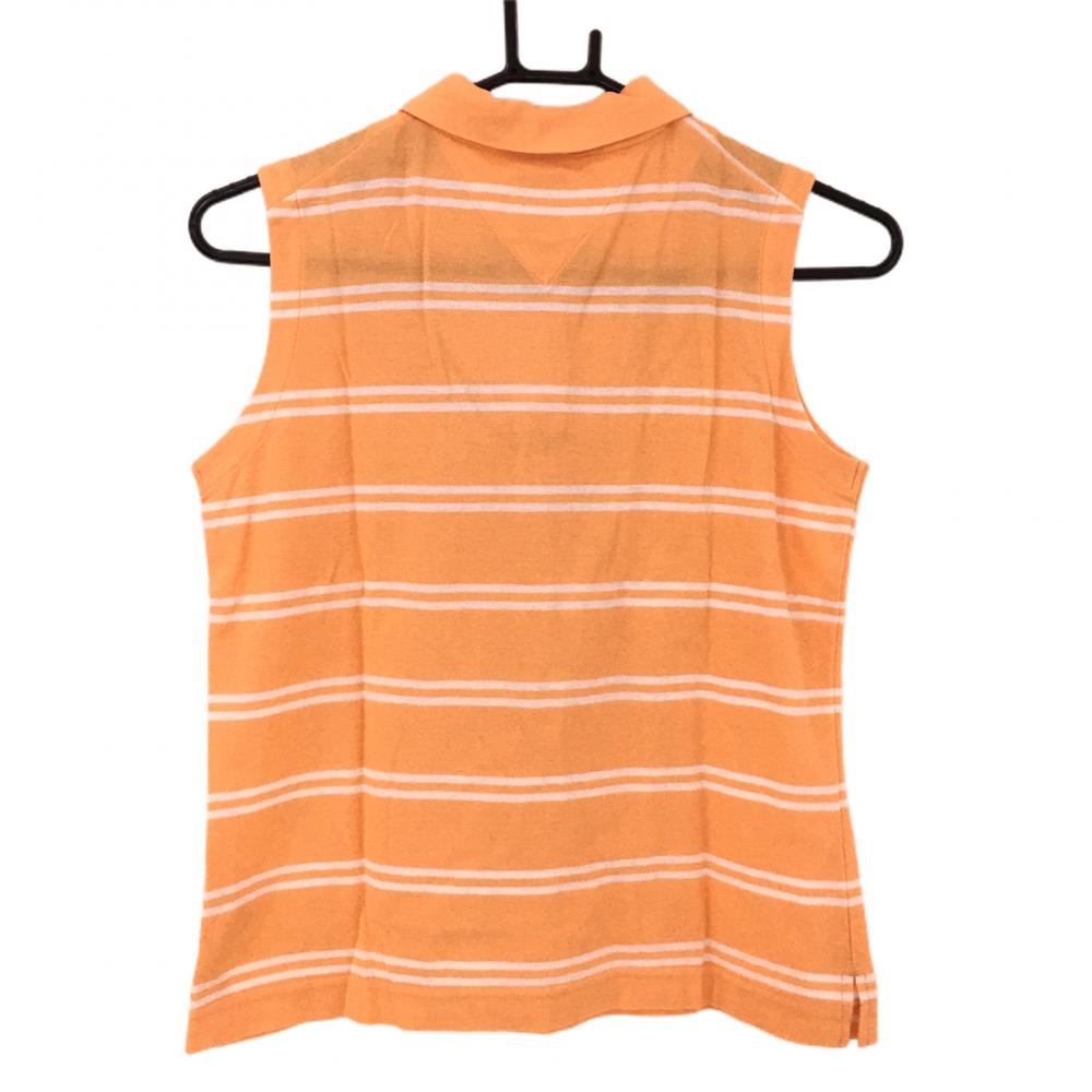 【美品】ゾーイ ノースリーブポロシャツ オレンジ×白 ボーダー柄 ロゴ刺しゅう レディース M ゴルフウェア ZOY