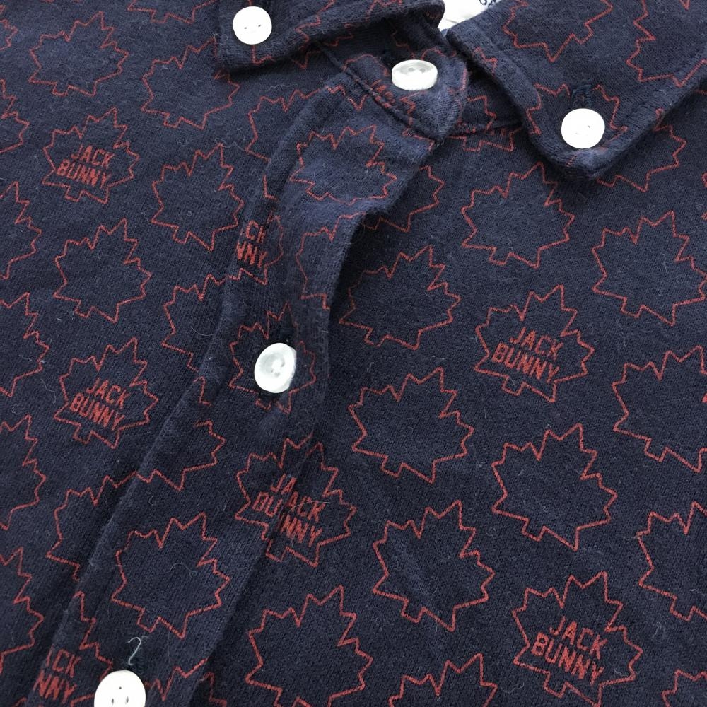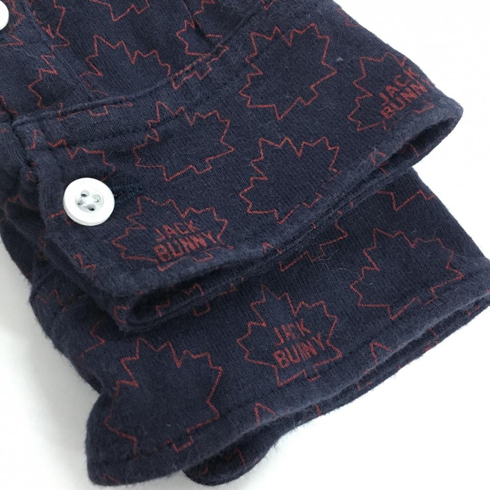 ジャックバニー 長袖シャツ ネイビー×レッド カエデ葉柄 ボタンダウン レディース 0(S) ゴルフウェア Jack Bunny