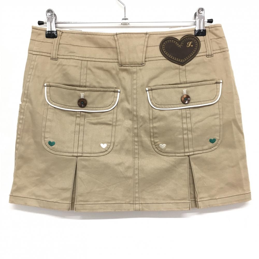 【美品】フィラゴルフ スカート ベージュ ボックスプリーツ ステッチ ハート刺しゅう レディース L ゴルフウェア FILA GOLF