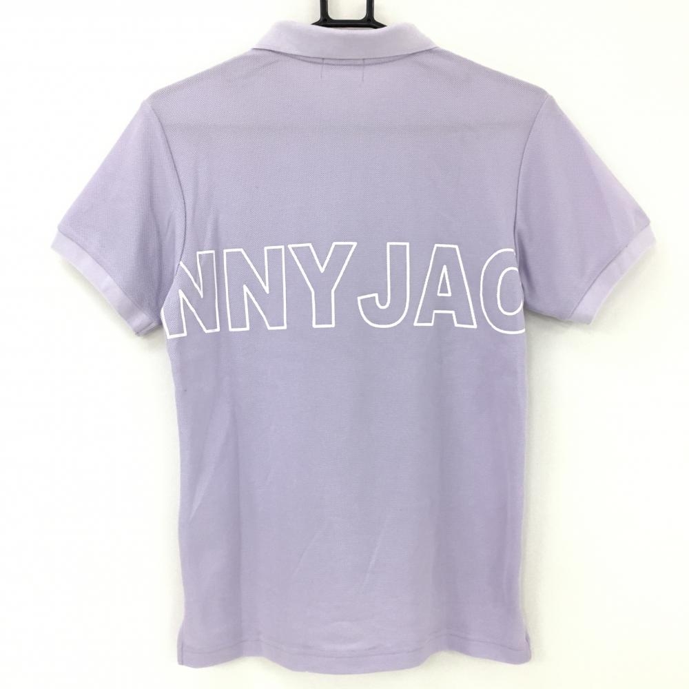 【美品】ジャックバニー 半袖ポロシャツ ライトパープル×白 ビッグロゴプリント メンズ 3(XL) ゴルフウェア Jack Bunny