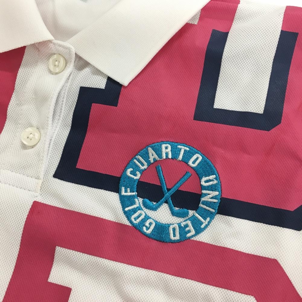 クアルトユナイテッド 半袖ポロシャツ 白×ピンク フロントビックプリント レディース S ゴルフウェア CUARTO UNITED