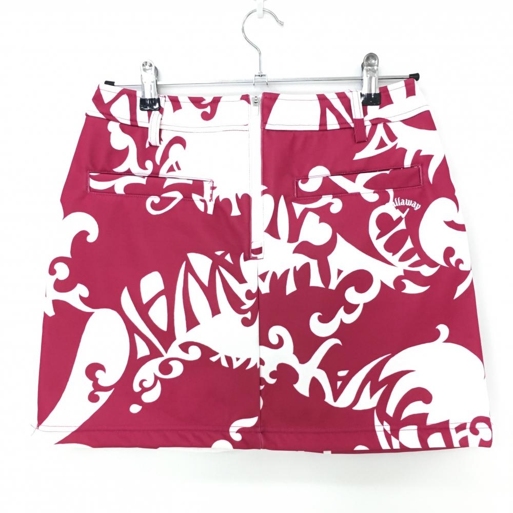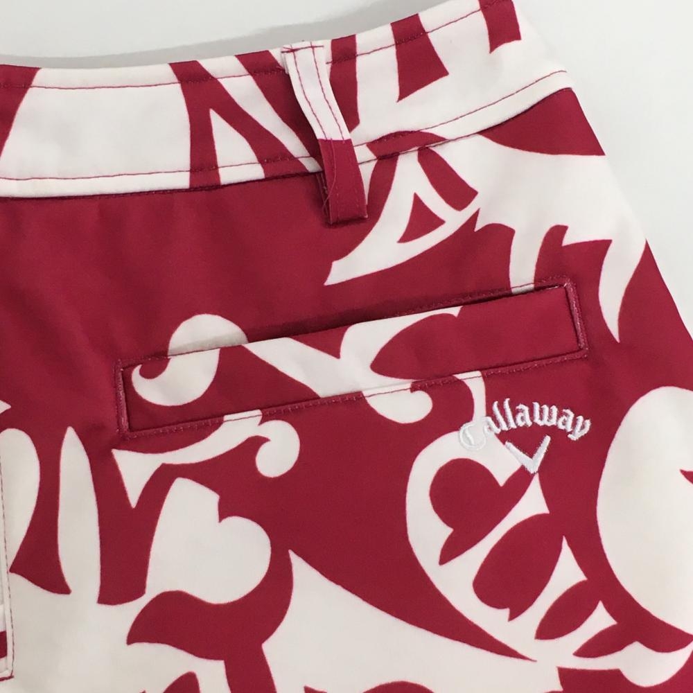 【超美品】キャロウェイ スカート ワインレッド×白 総柄 裏微起毛 バックファスナー レディース M ゴルフウェア Callaway