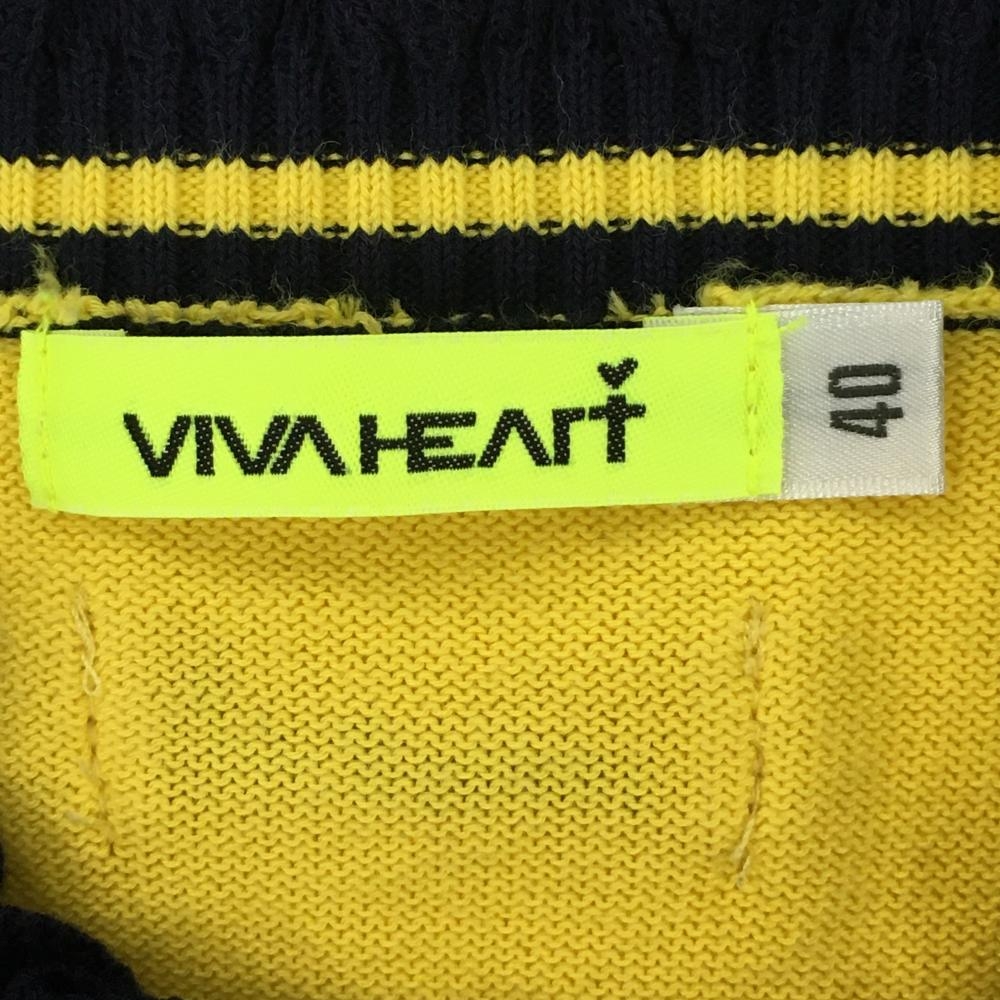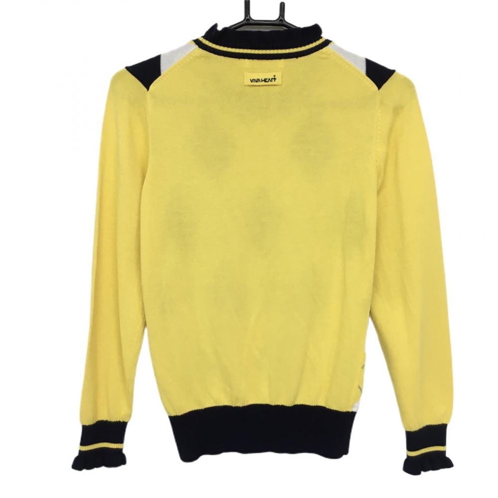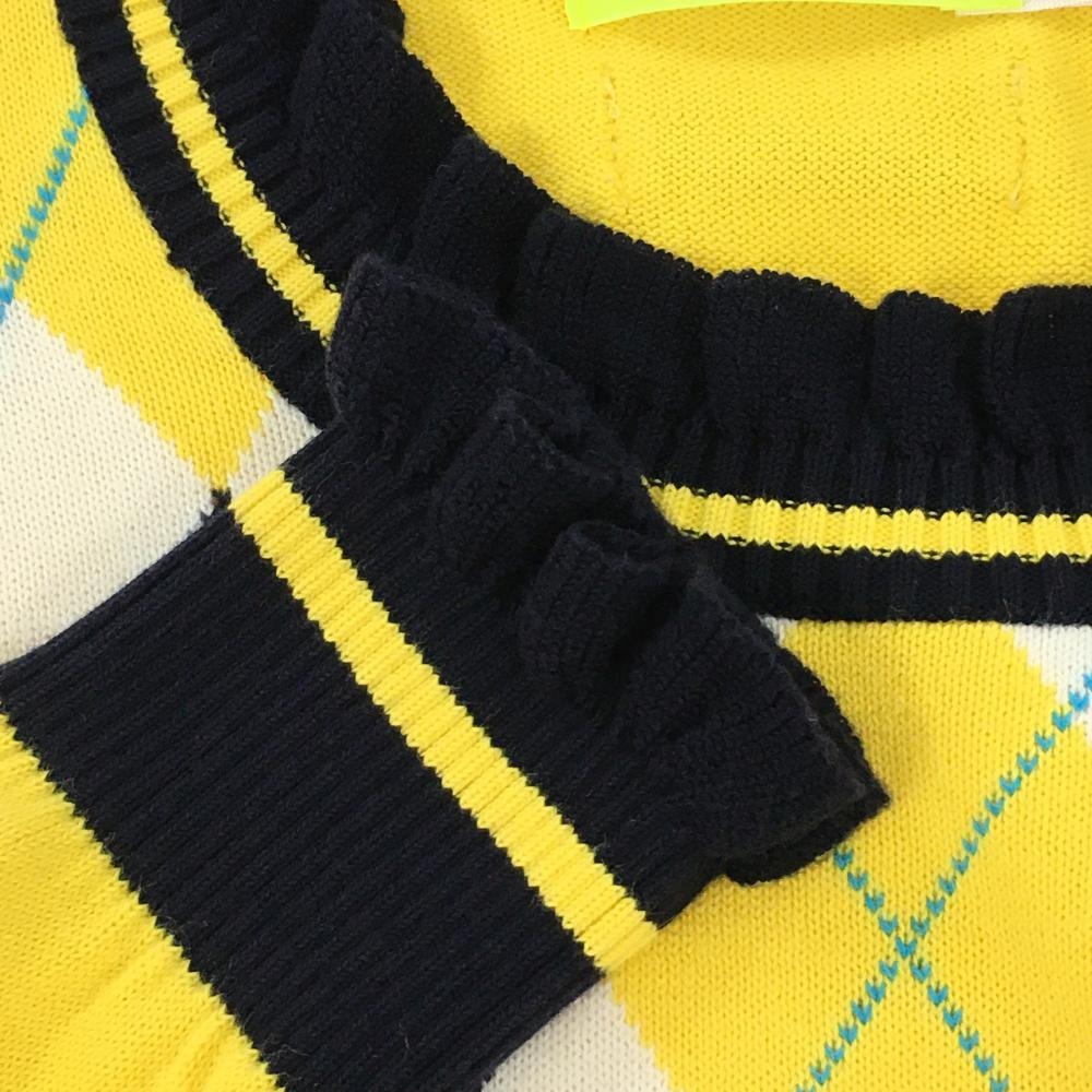 【美品】ビバハート セーター イエロー×ネイビー アーガイル柄 ニット ネック・袖口フリル レディース 40(M) ゴルフウェア VIVA HEART