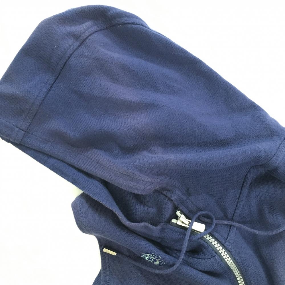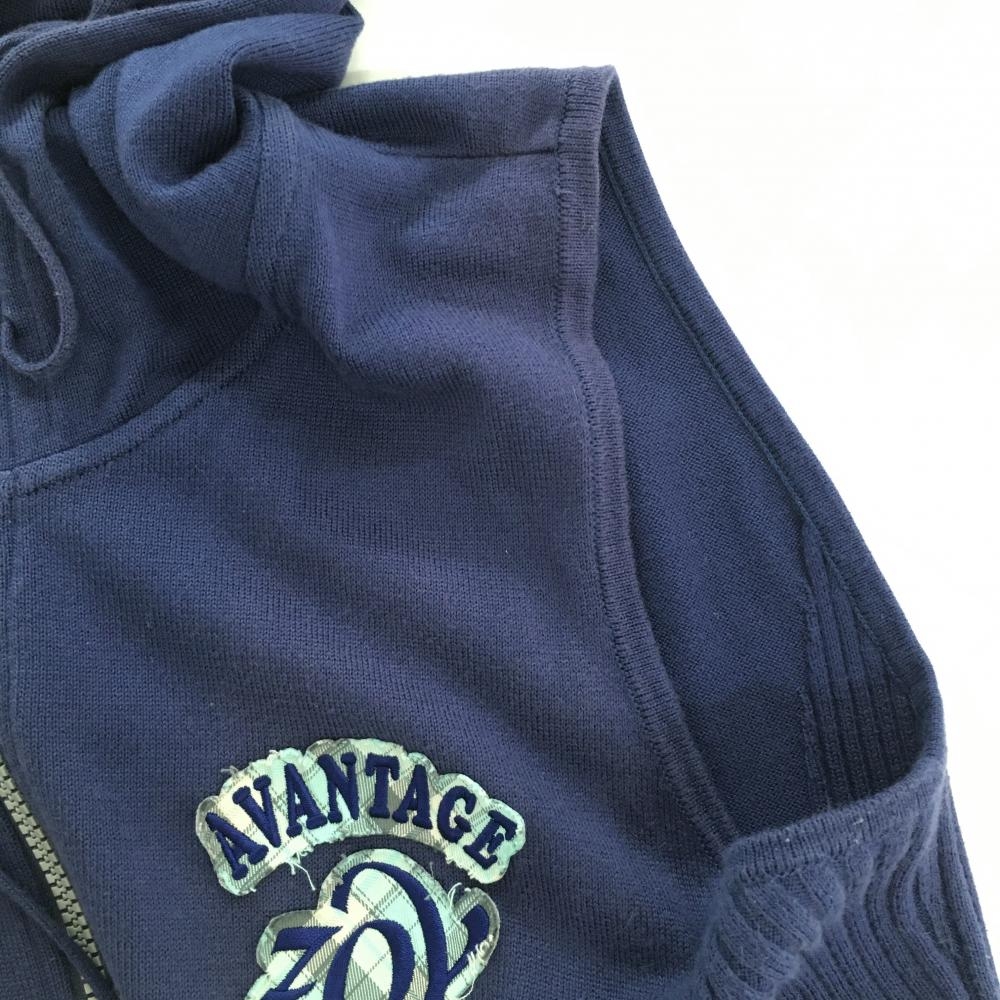 ゾーイ ニットベスト ネイビー フルジップ フード付き 胸ポケット ダブルジップ ワッペン レディース 40(L) ゴルフウェア ZOY