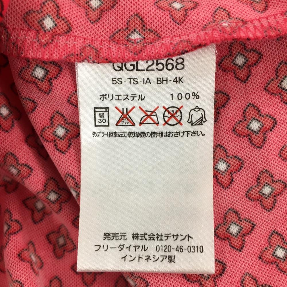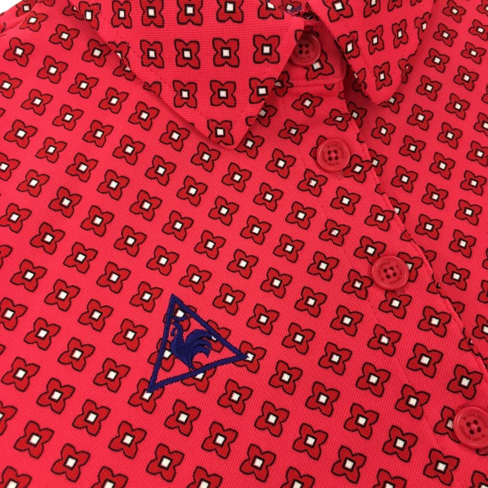 【超美品】ルコック 半袖ポロシャツ ピンク×レッド 花柄 ロゴ刺しゅう レディース M ゴルフウェア le coq sportif