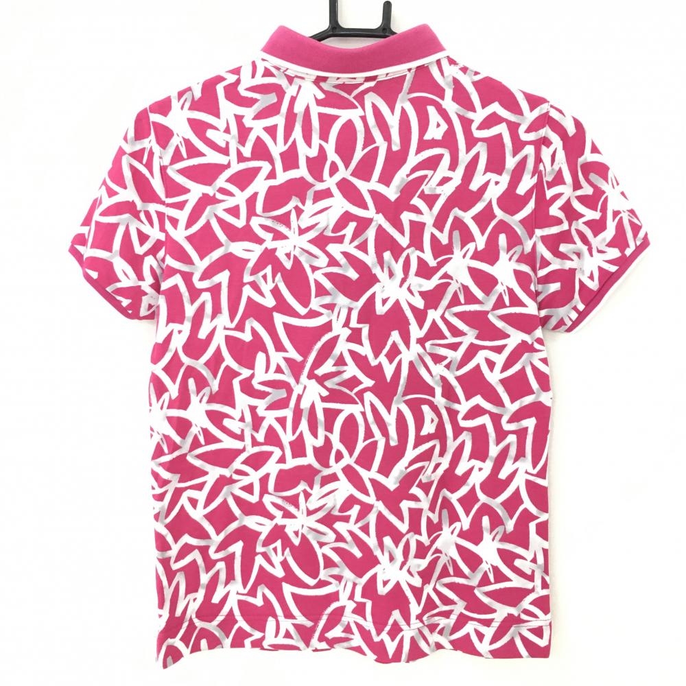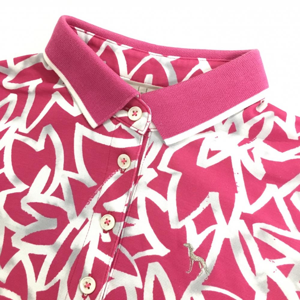 アダバット 半袖ポロシャツ ピンク×白 総柄 レディース 36(S) ゴルフウェア adabat