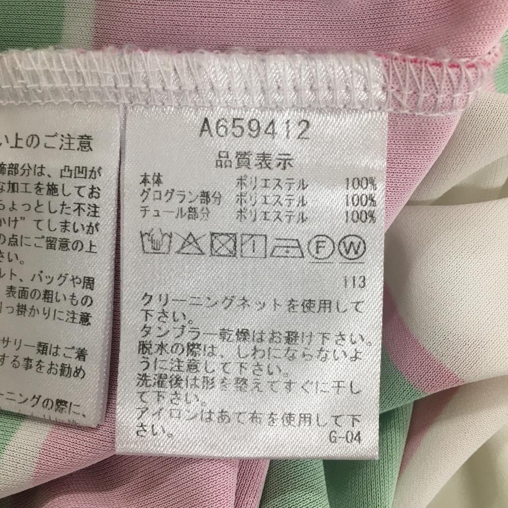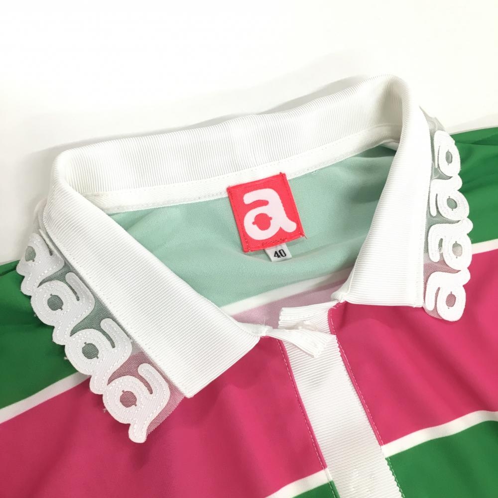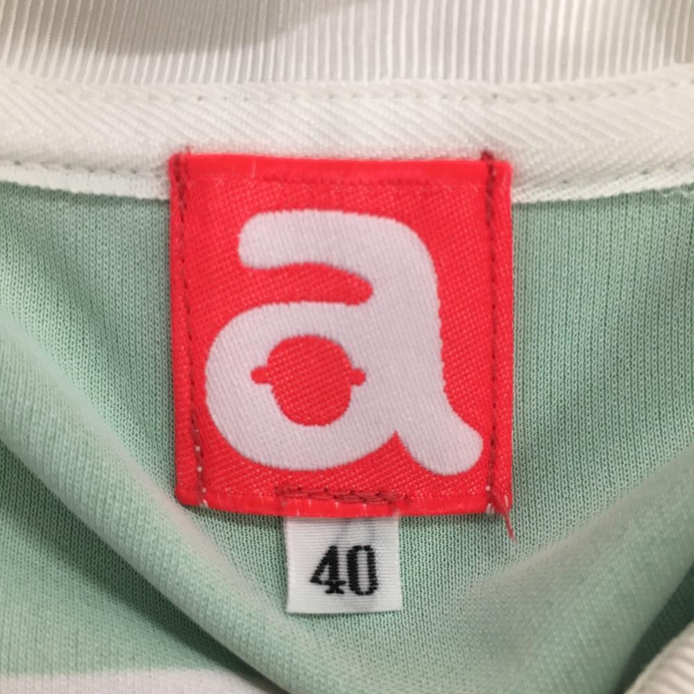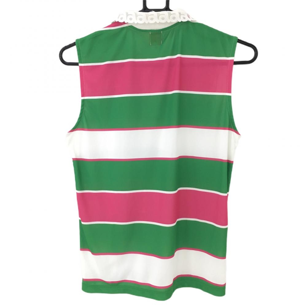 【超美品】アルチビオ ノースリーブポロシャツ 白×グリーン ボーダー 襟ロゴ レディース 40(L) ゴルフウェア archivio