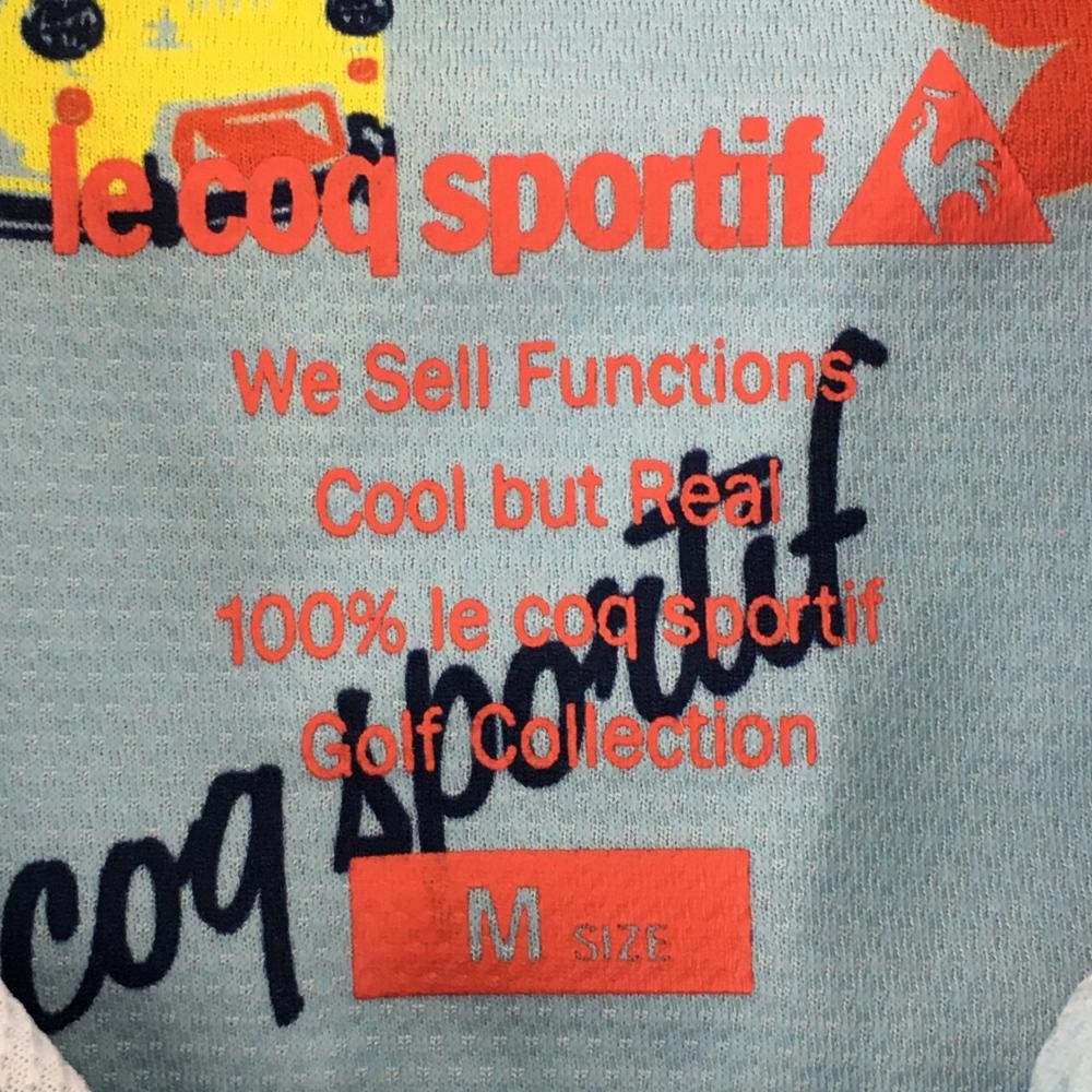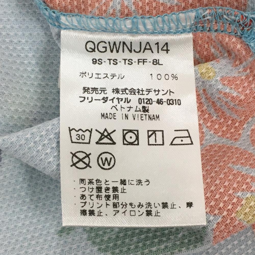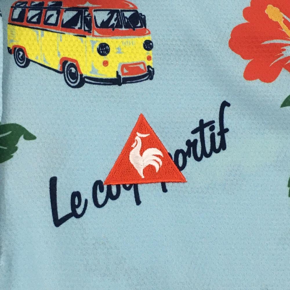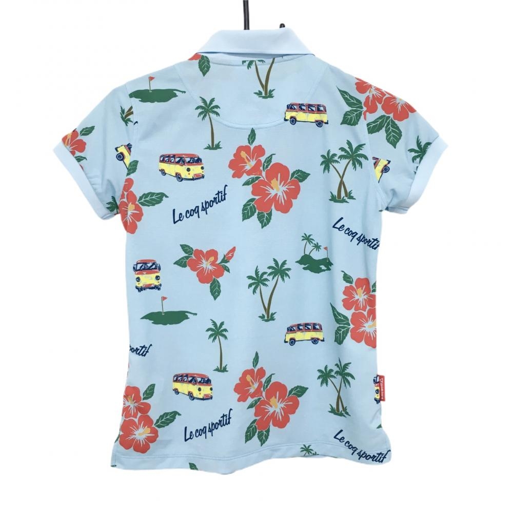 【超美品】ルコック 半袖ポロシャツ ライトブルー×レッド 花柄 ハイビスカス ヤシの木 レディース M ゴルフウェア le coq sportif