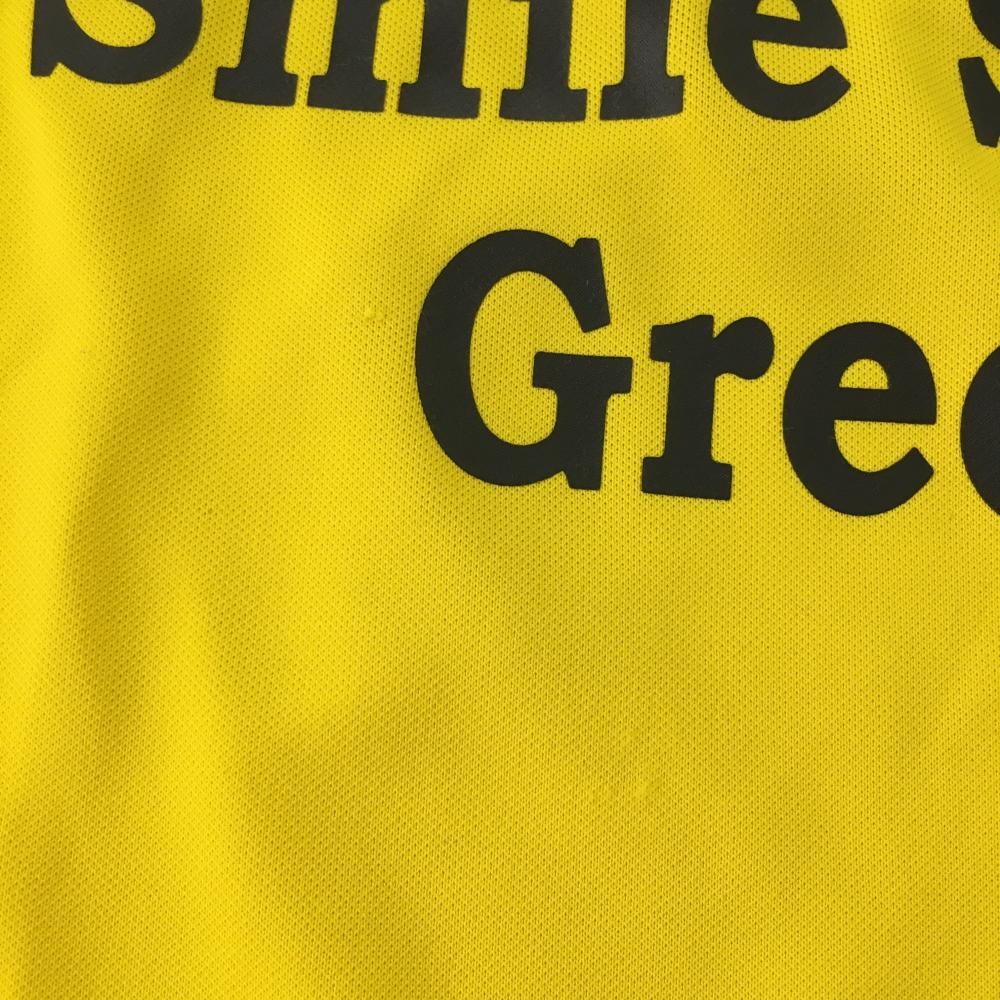 ルコック 半袖ハイネックシャツ イエロー×オレンジ ハーフジップ ロゴプリント レディース M ゴルフウェア le coq sportif