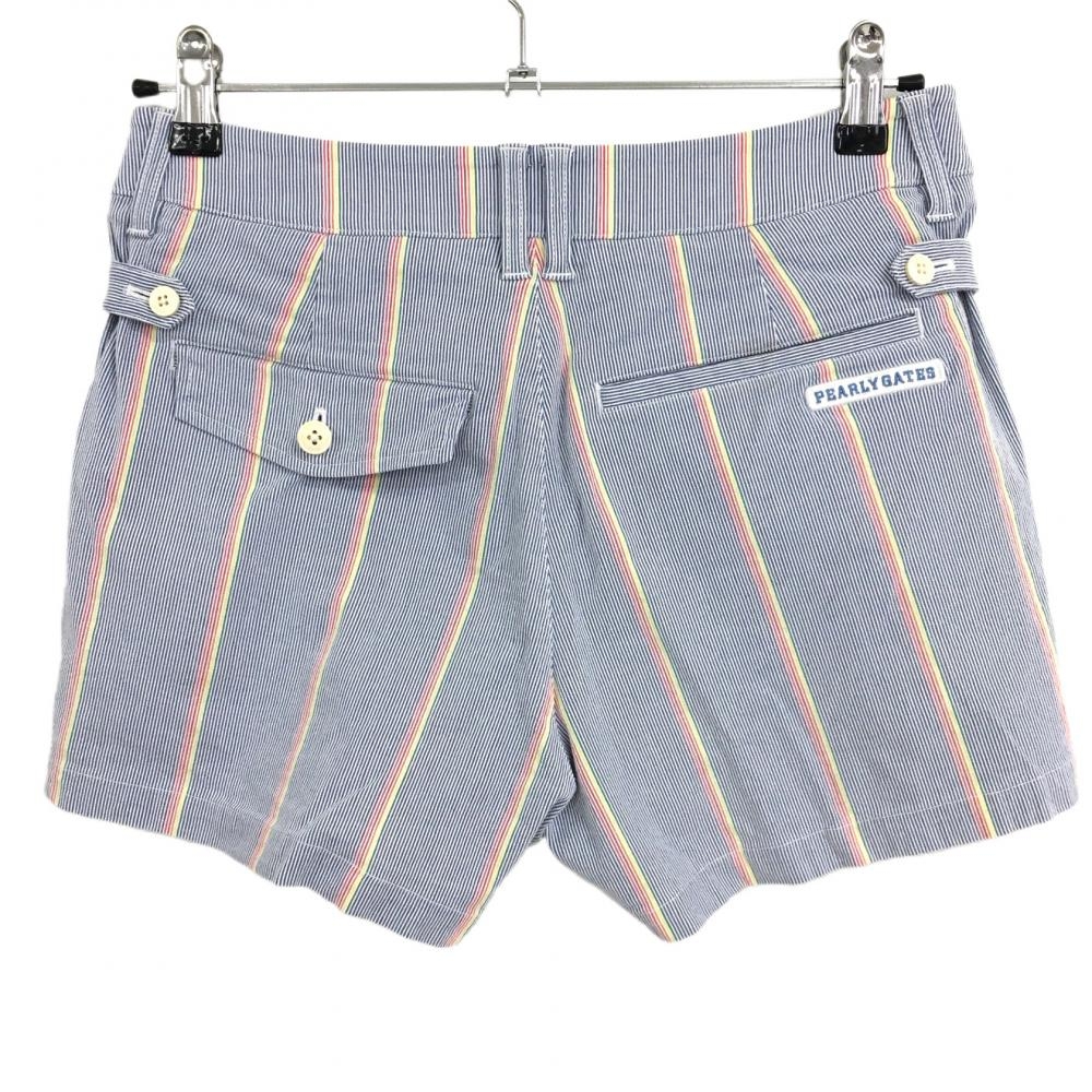 パーリーゲイツ ショートパンツ ネイビー×レッド×イエロー 細ストライプ レディース 0(S) ゴルフウェア PEARLY GATES