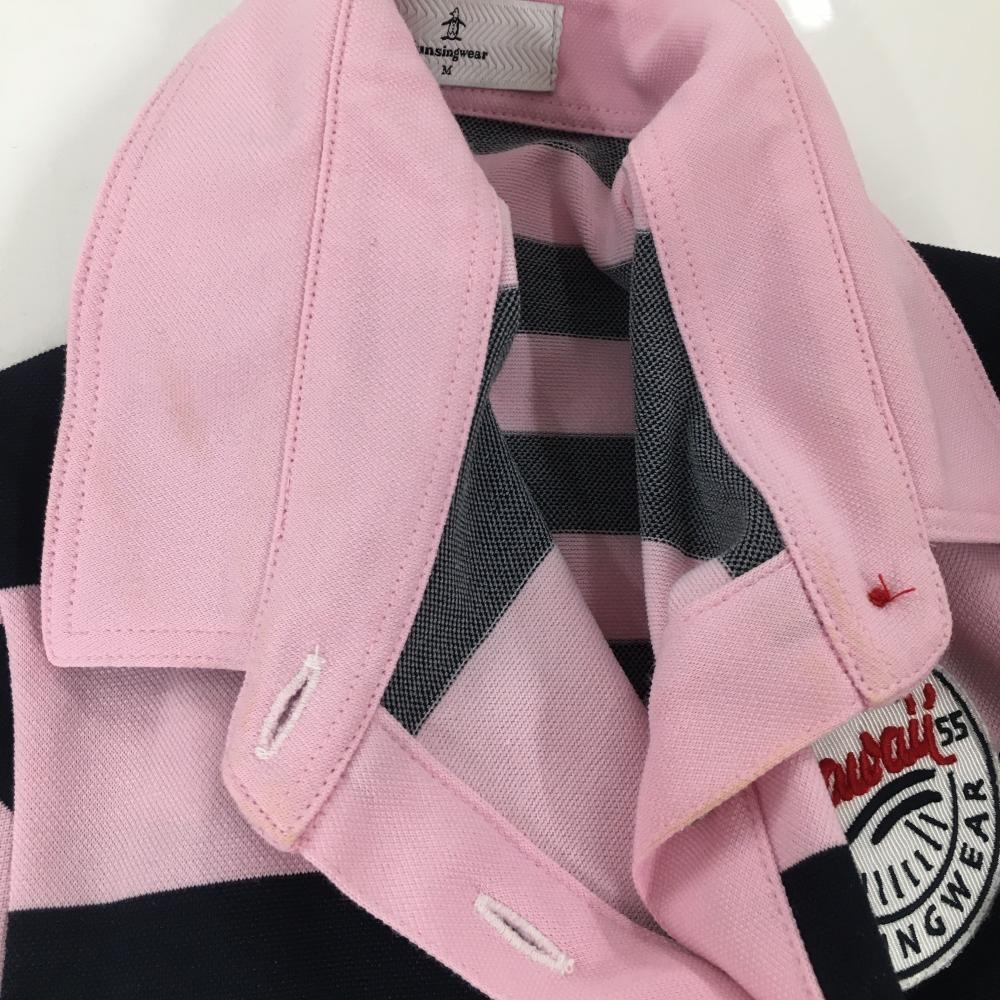マンシングウェア 半袖ポロワンピース ピンク×ネイビー ボーダー レディース M ゴルフウェア Munsingwear