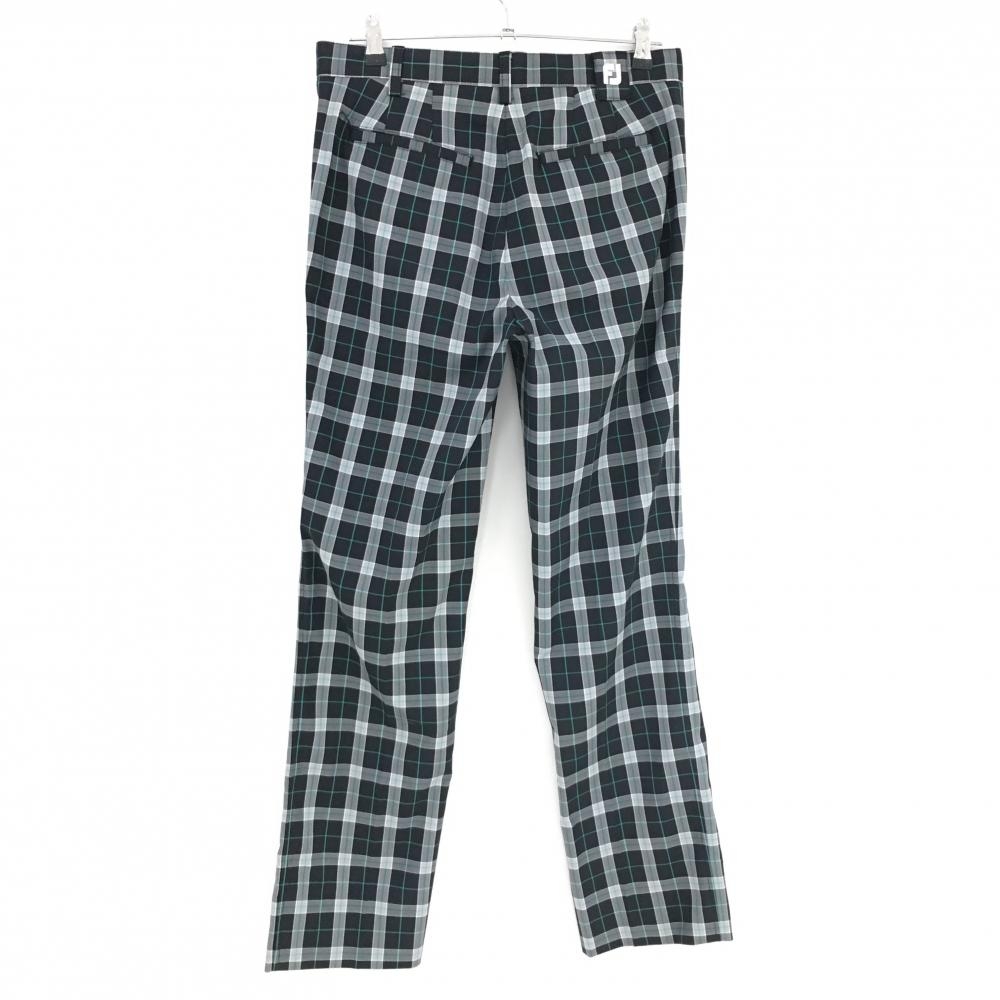 【美品】フットジョイ パンツ 黒×グリーン チェック 総柄 ストレッチ メンズ W88 ゴルフウェア FootJoy