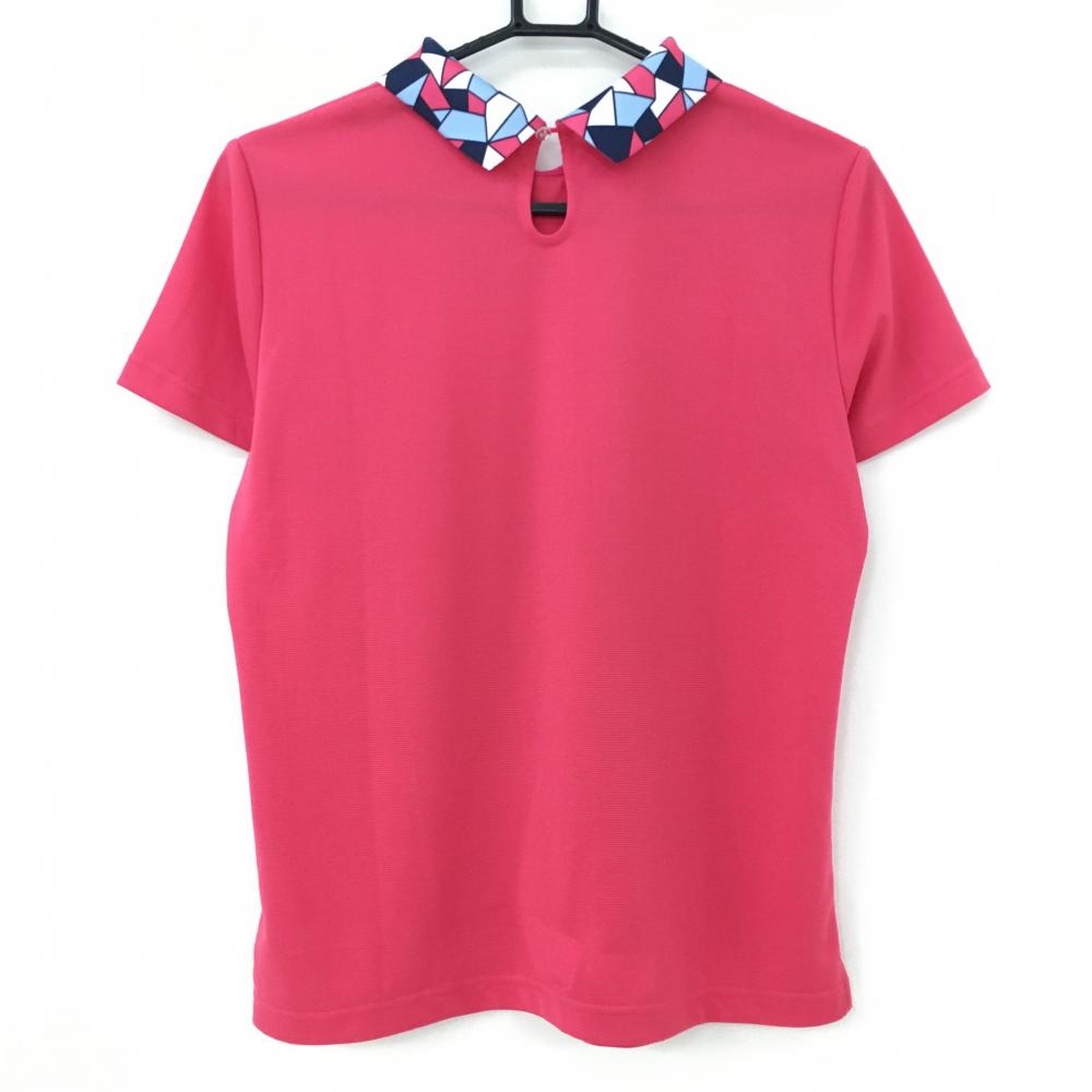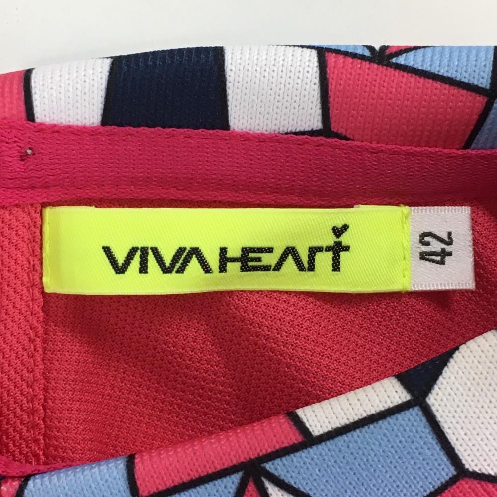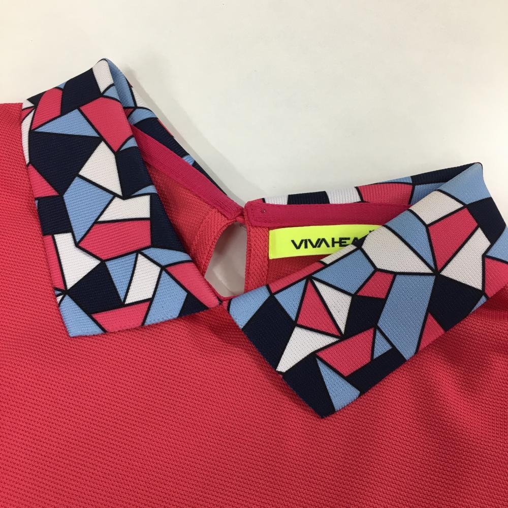 【超美品】ビバハート 襟付き半袖シャツ ピンク×ネイビー 襟総柄 レディース 42(L) ゴルフウェア VIVA HEART