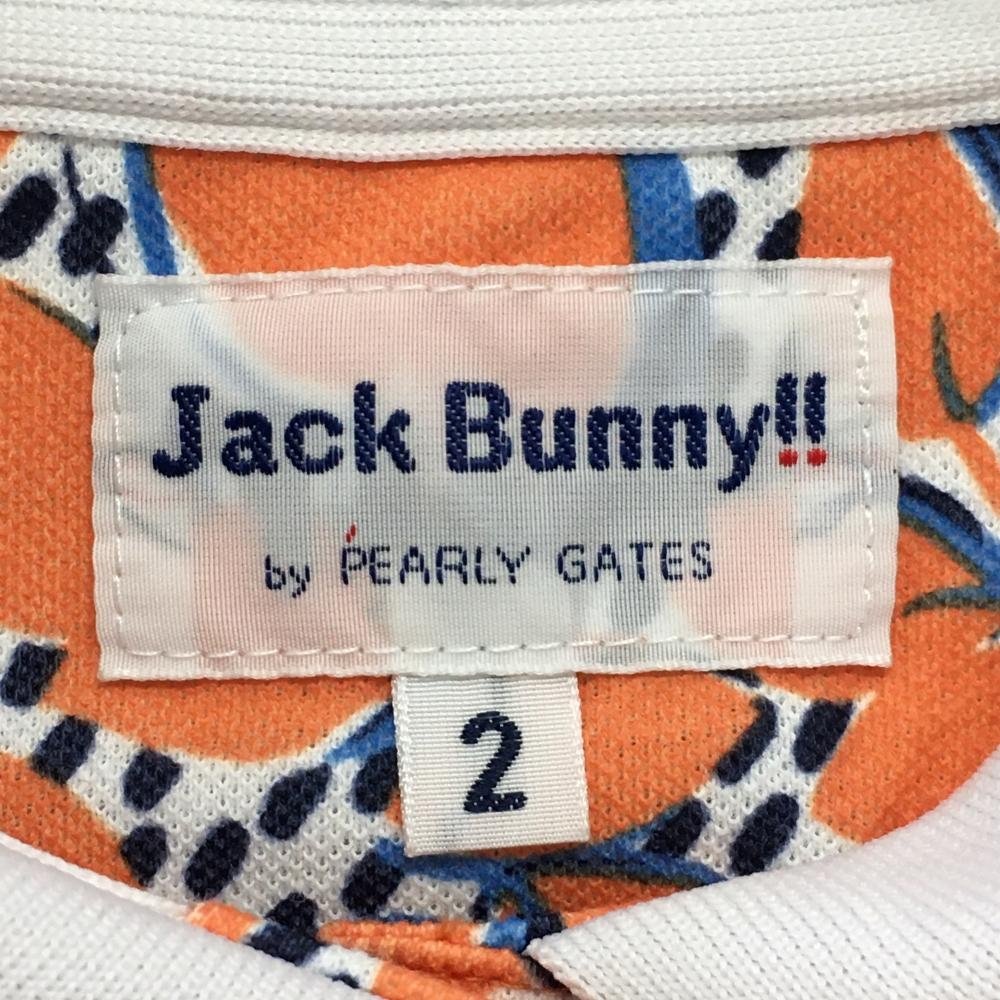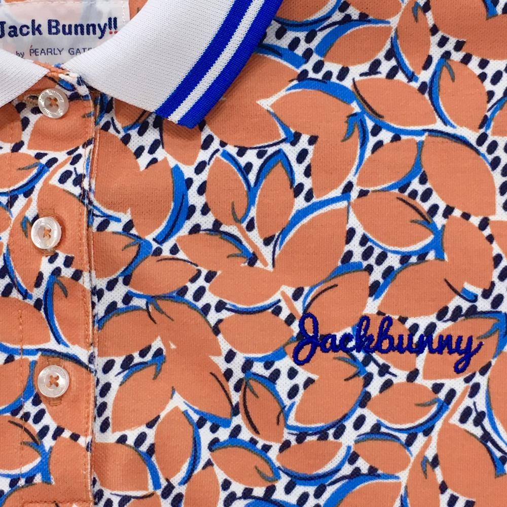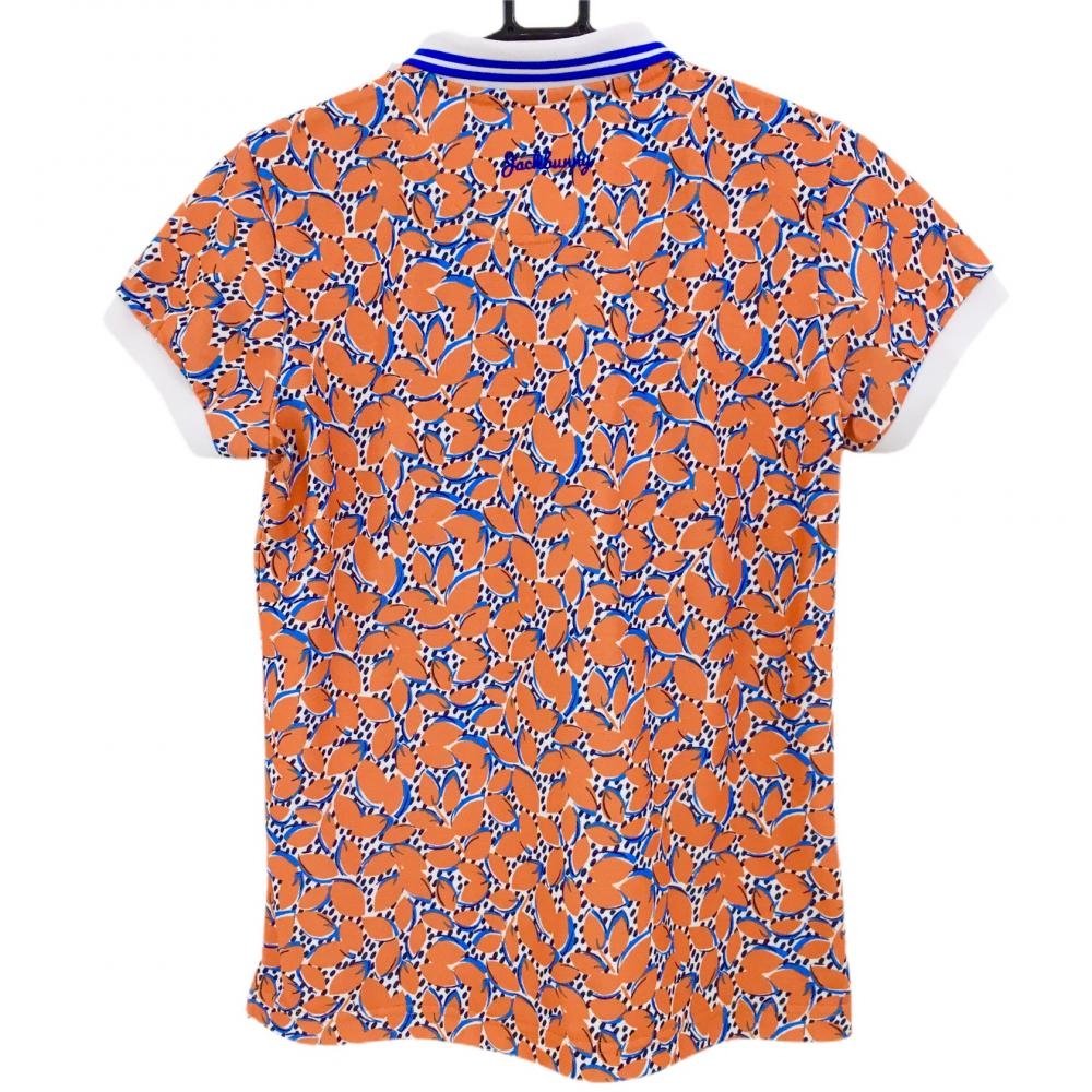ジャックバニー 半袖ポロシャツ オレンジ×白 総柄 襟ライン レディース 2(L) ゴルフウェア Jack Bunny
