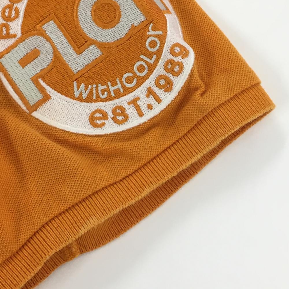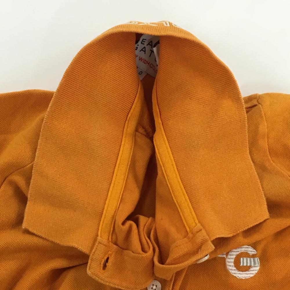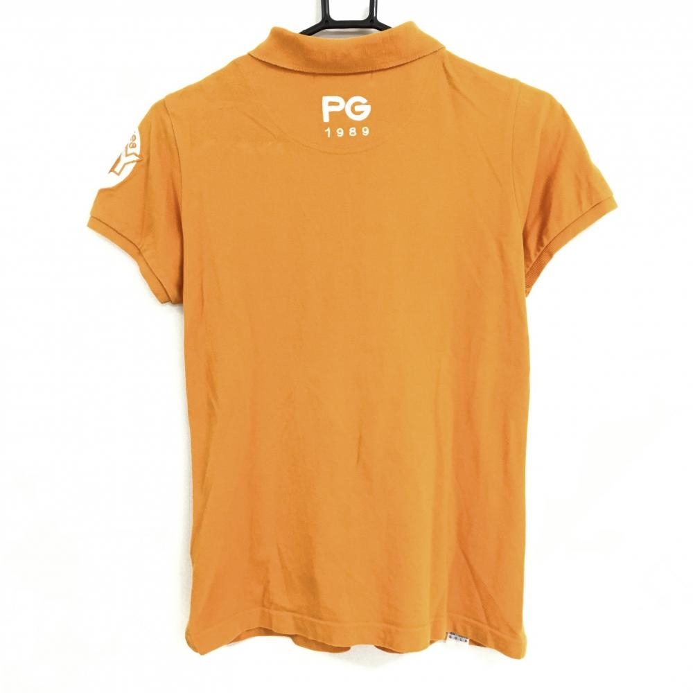 パーリーゲイツ 半袖ポロシャツ オレンジ×白 袖ビッグワッペン レディース 0(S) ゴルフウェア PEARLY GATES