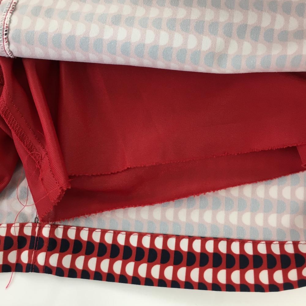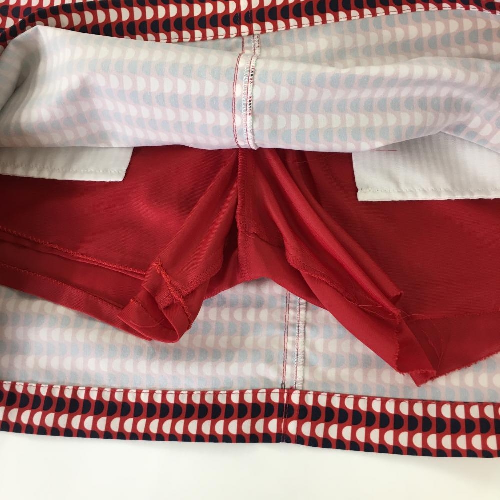 【美品】ジャックバニー スカート レッド×ネイビー 総柄 内側インナーパンツ レディース 1(M) ゴルフウェア Jack Bunny
