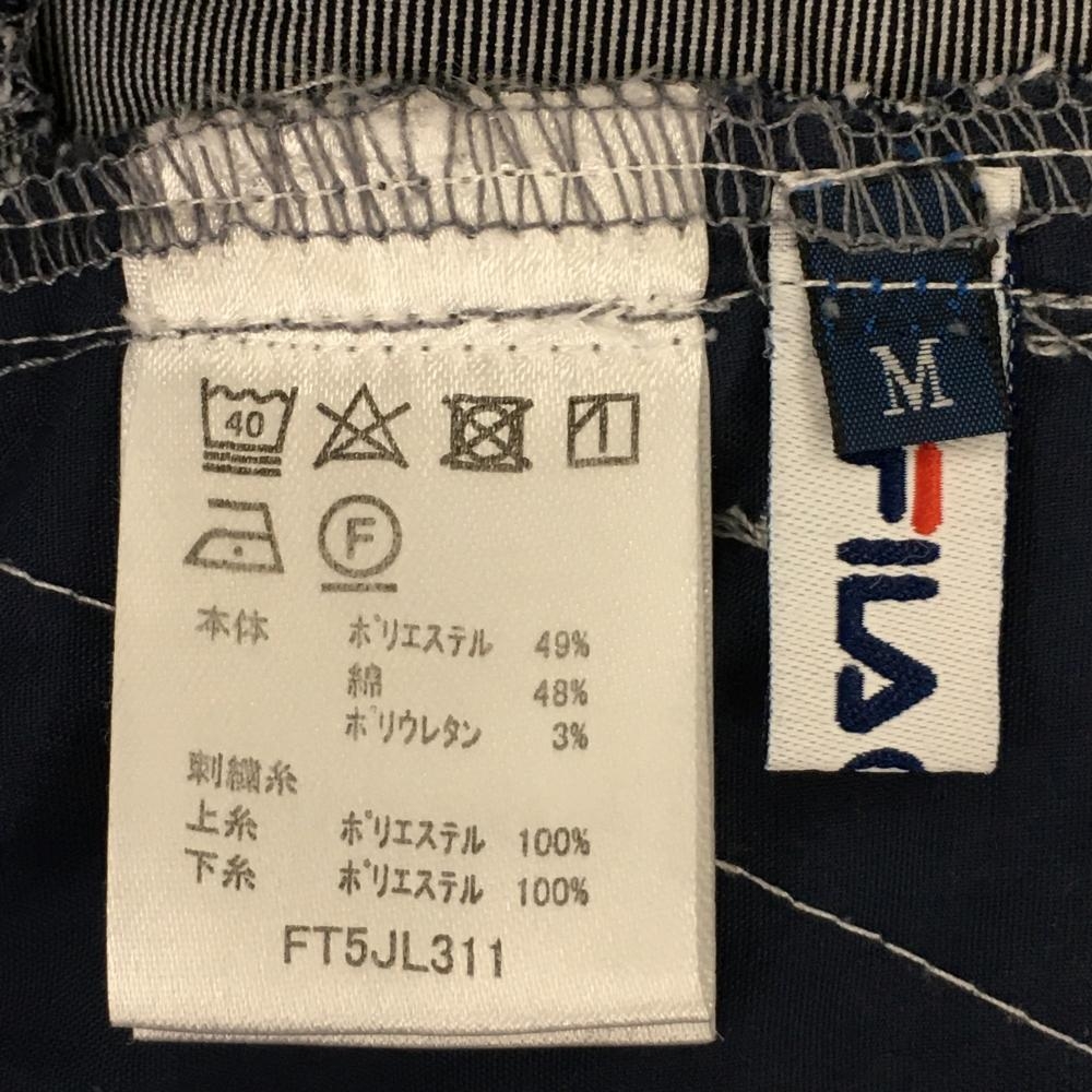 【超美品】フィラゴルフ スカート ネイビー×白 刺しゅう総柄 裾プリーツ レディース M ゴルフウェア FILA GOLF
