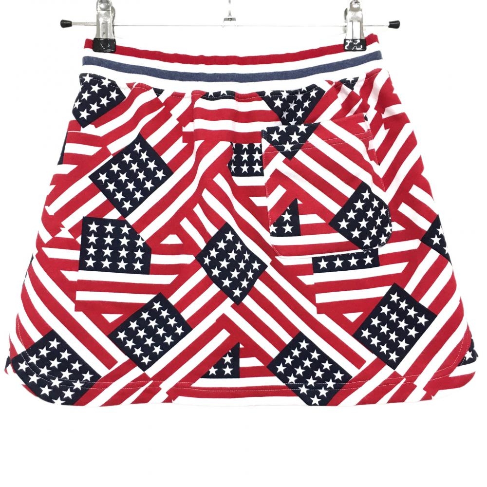 キャロウェイ スカート レッド×白 総柄 ベアワッペン ウエストゴム レディース S ゴルフウェア Callaway