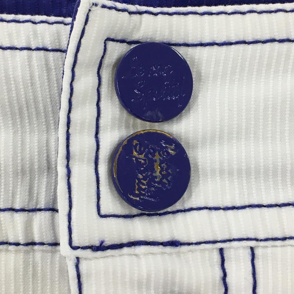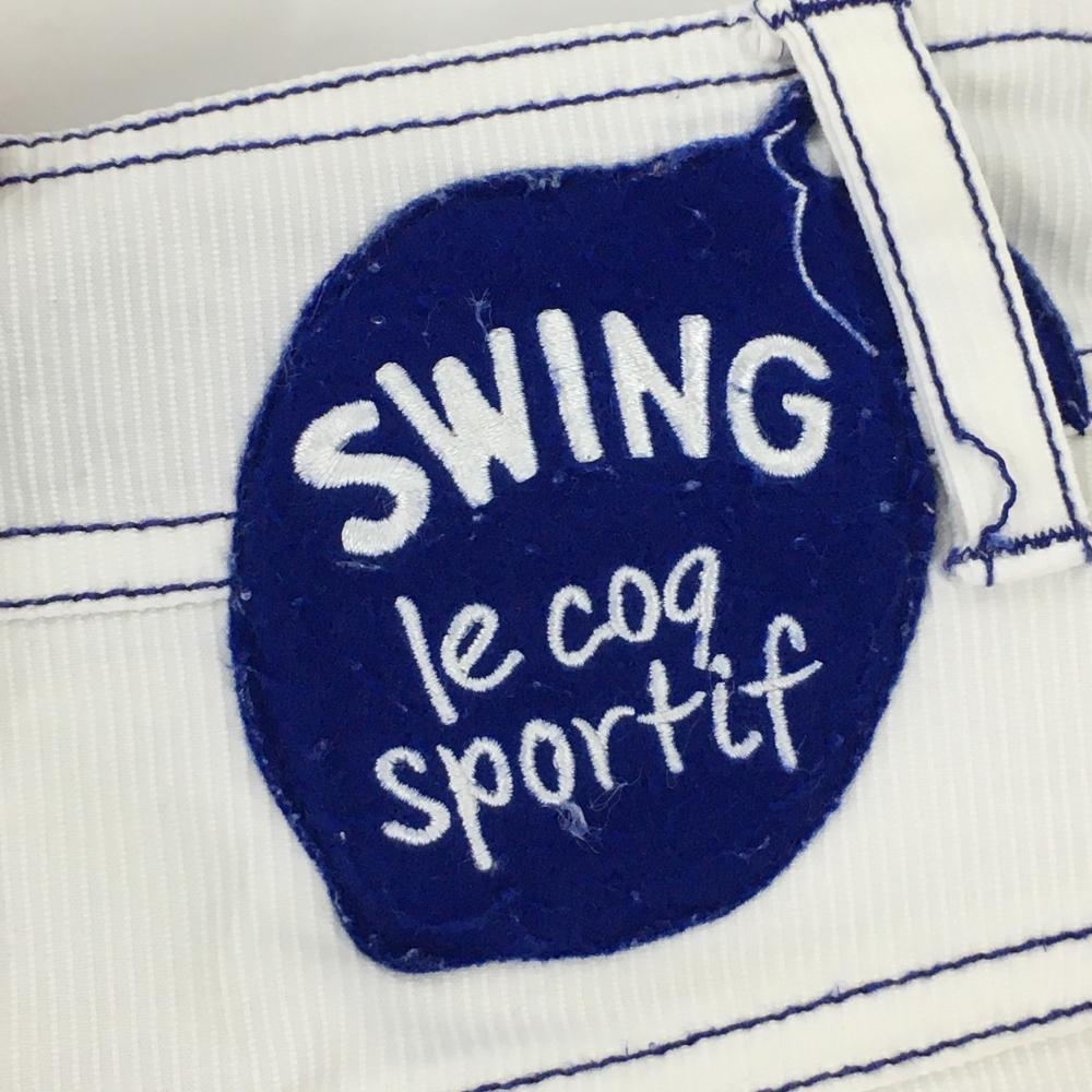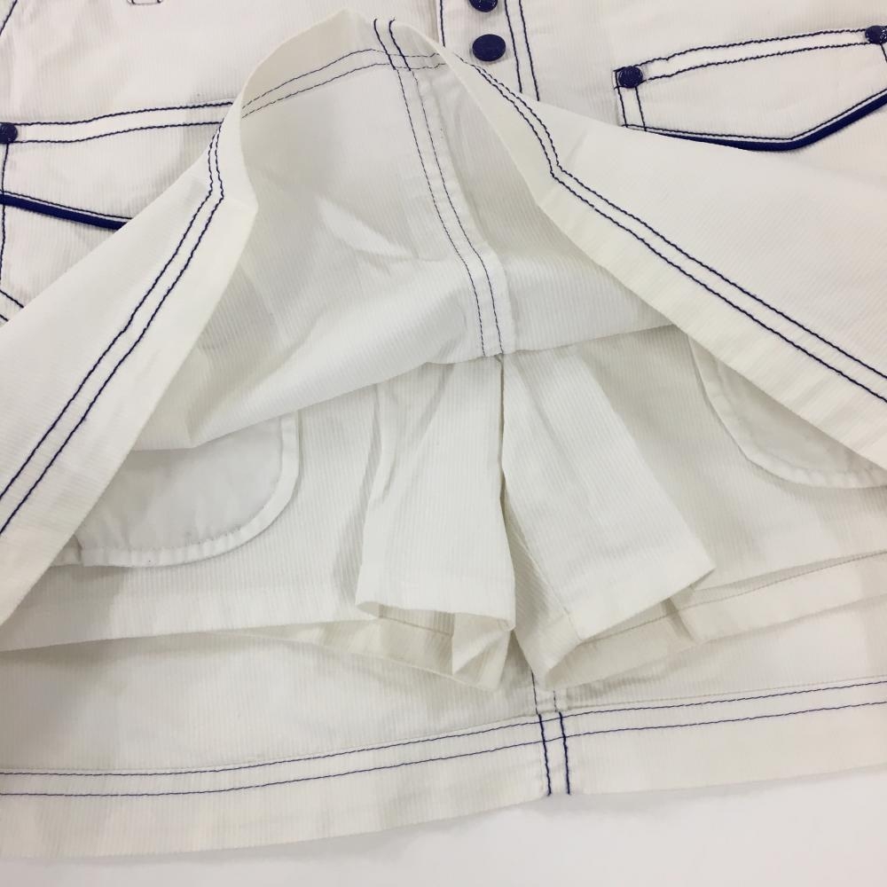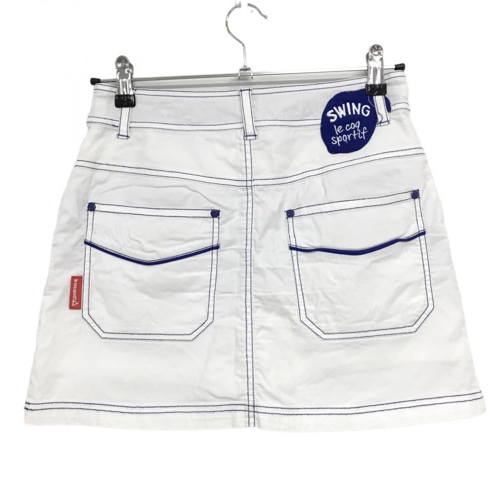【美品】ルコック スカート 白×ネイビー ストライプ織生地 ステッチ ストレッチ レディース 9(M) ゴルフウェア le coq sportif