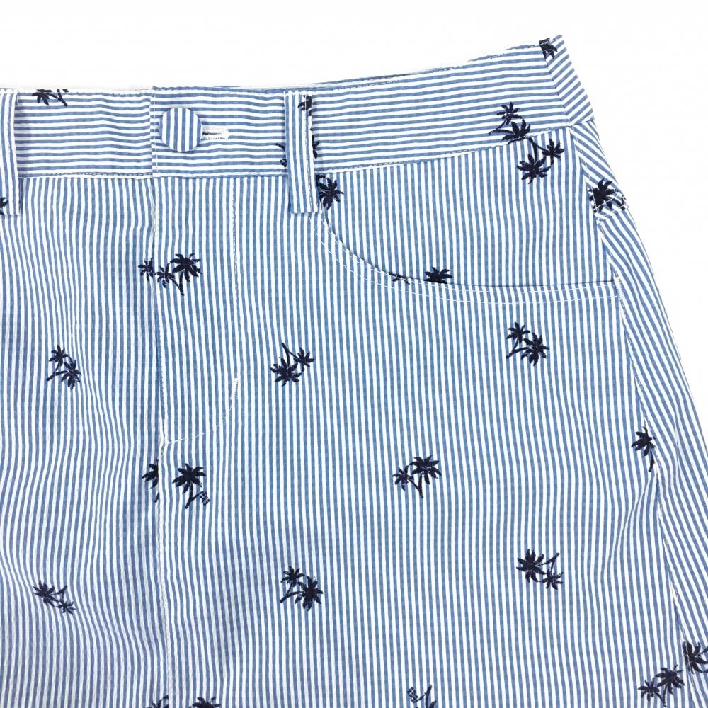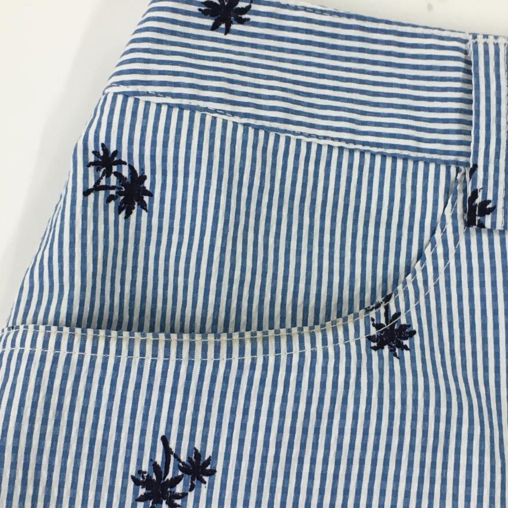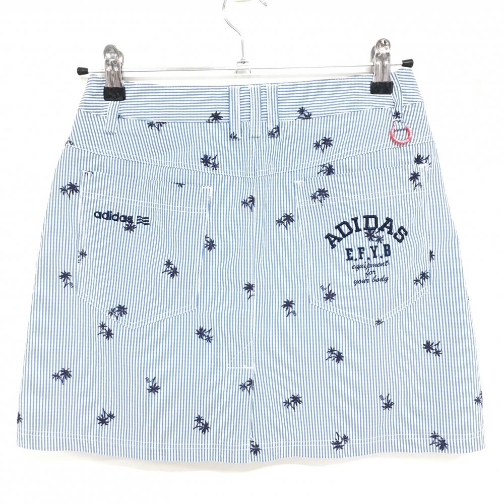 アディダス スカート 白×ブルー ストライプ ヤシの木 サッカー生地 ストレッチ レディース S/P ゴルフウェア adidas