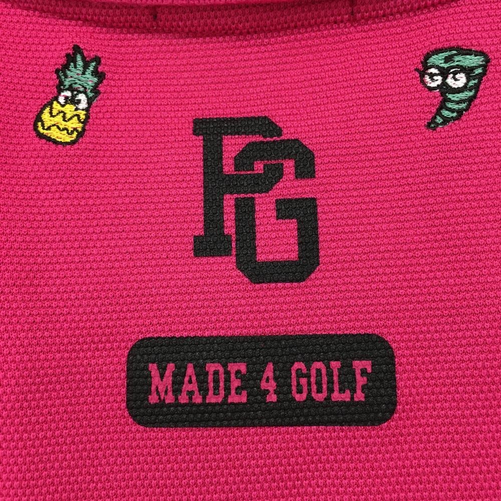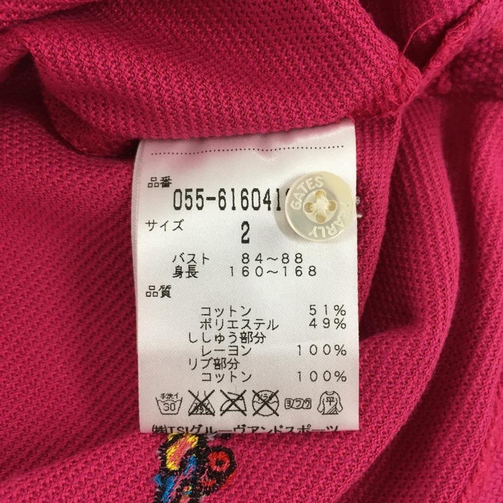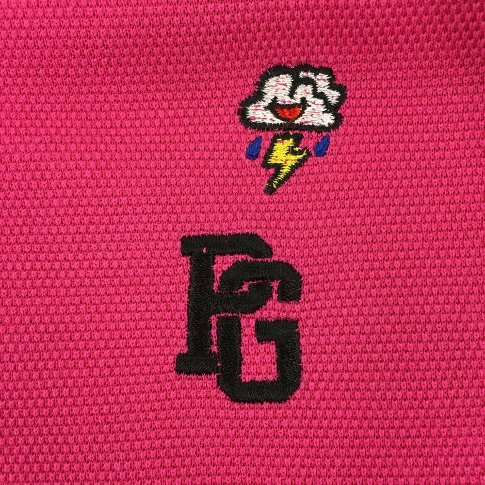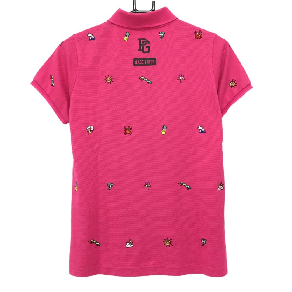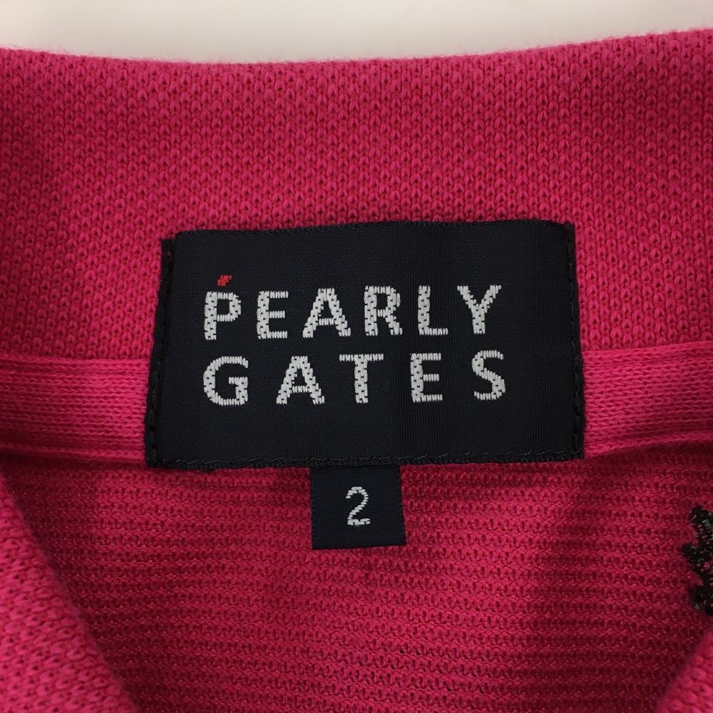 【美品】パーリーゲイツ 半袖ポロシャツ ピンク×マルチ ウェザー柄刺しゅう レディース 2(L) ゴルフウェア PEARLY GATES