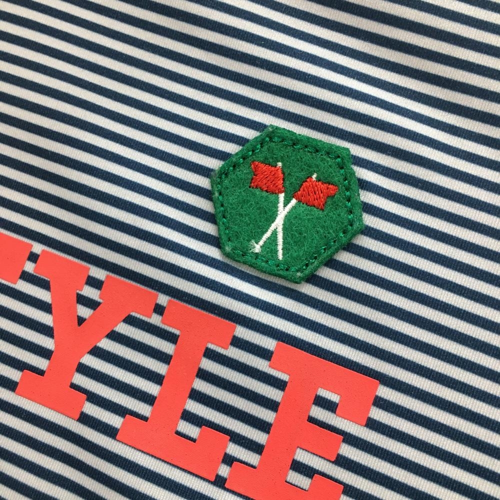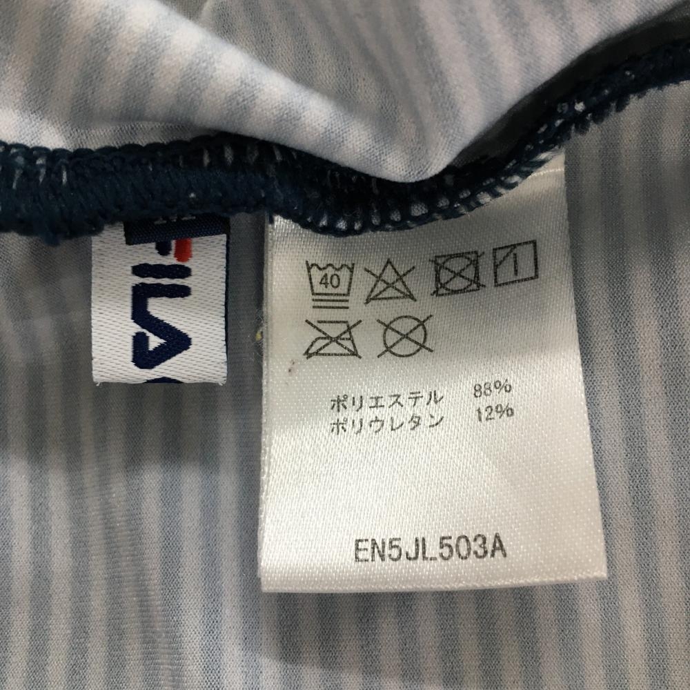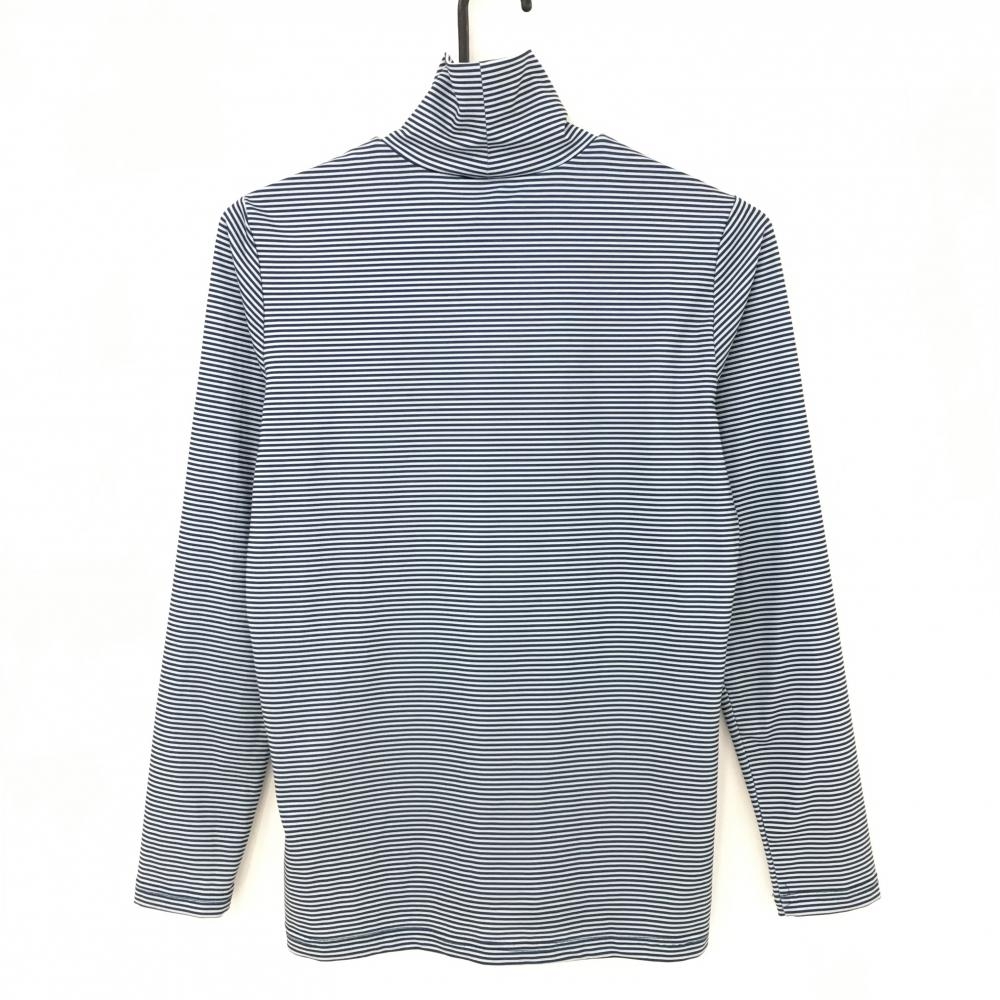 【超美品】フィラゴルフ 長袖タートルネックシャツ ネイビー ライトグレー ボーダー柄 胸元プリント レディース M ゴルフウェア FILA GOLF
