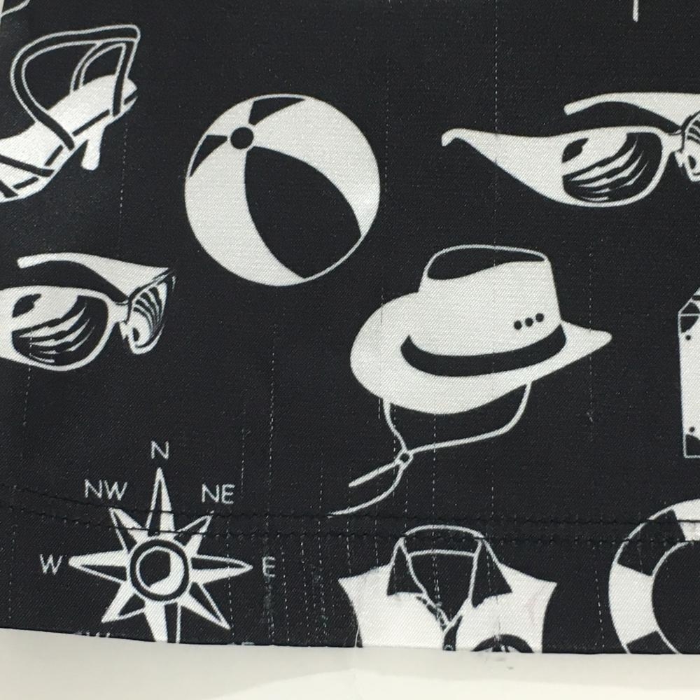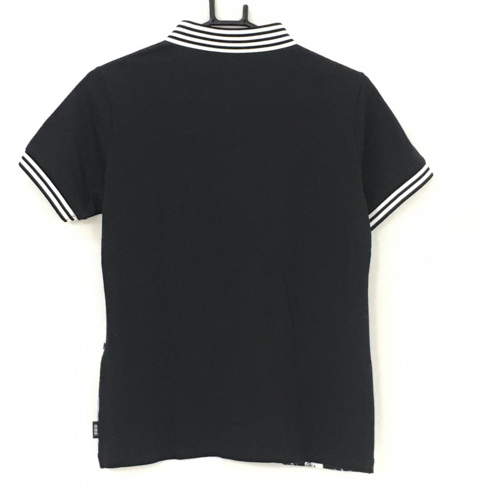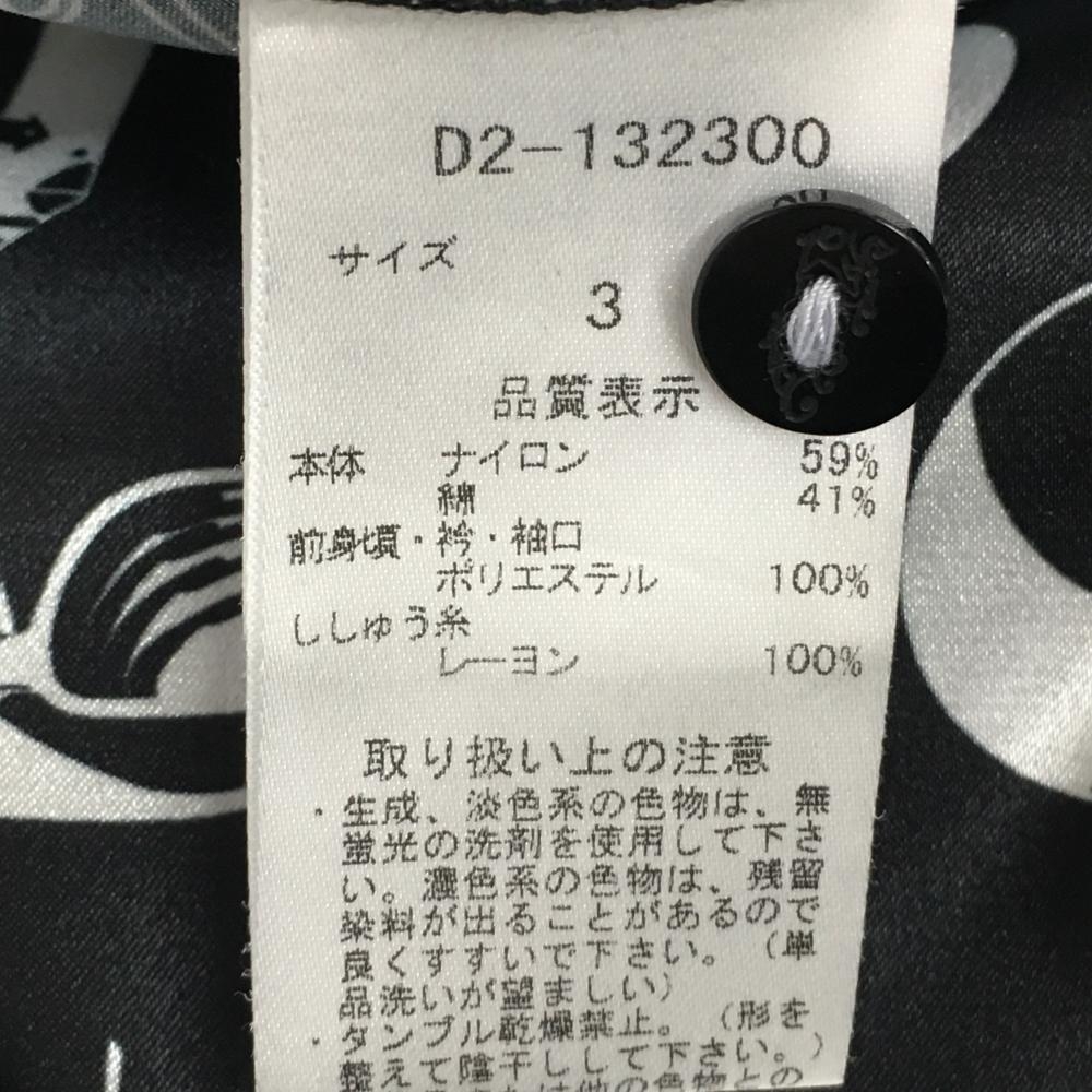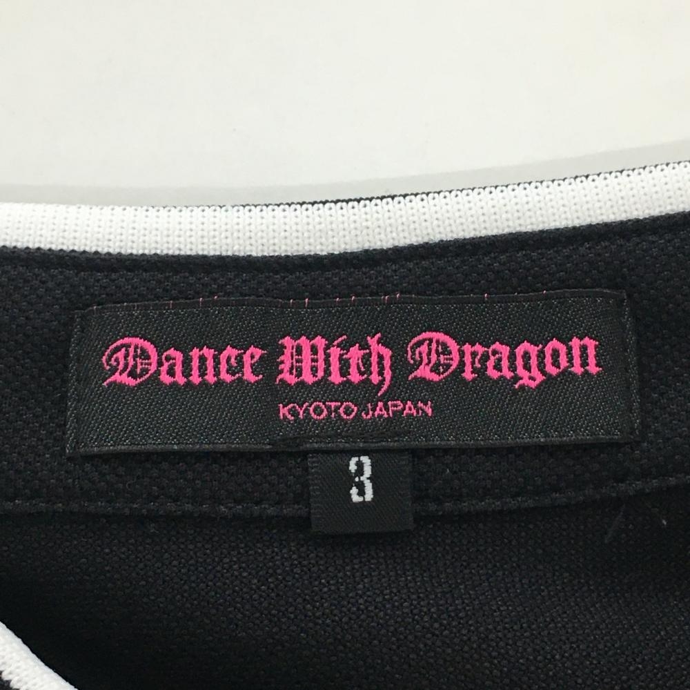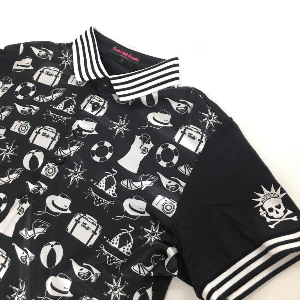 【美品】ダンスウィズドラゴン 半袖ポロシャツ 黒×白 前面総柄 スカル ラインストーン レディース 3(L) ゴルフウェア Dance With Dragon