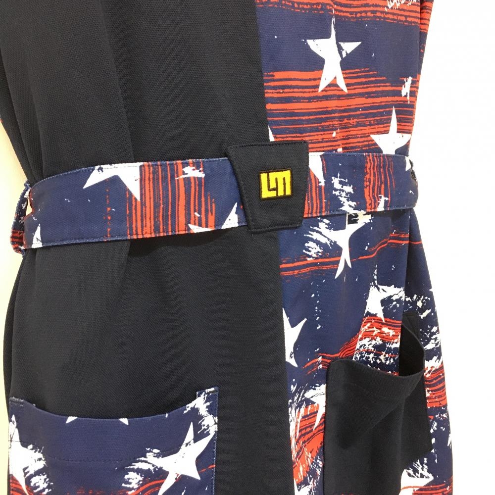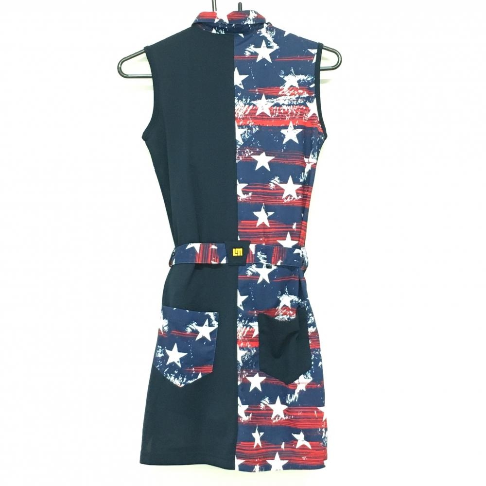 【超美品】ラウドマウス ノースリーブポロワンピース ネイビー×レッド プリマスロック柄 星 レディース S ゴルフウェア LOUDMOUTH