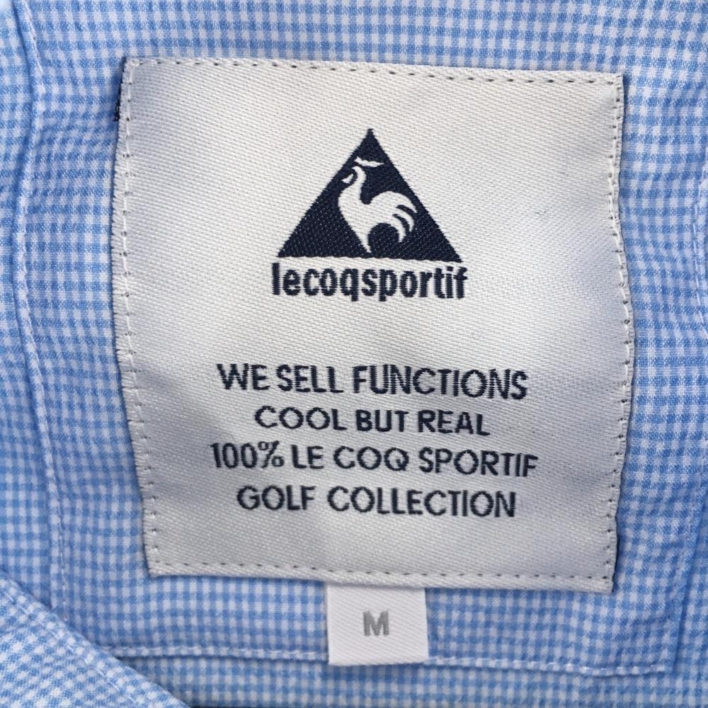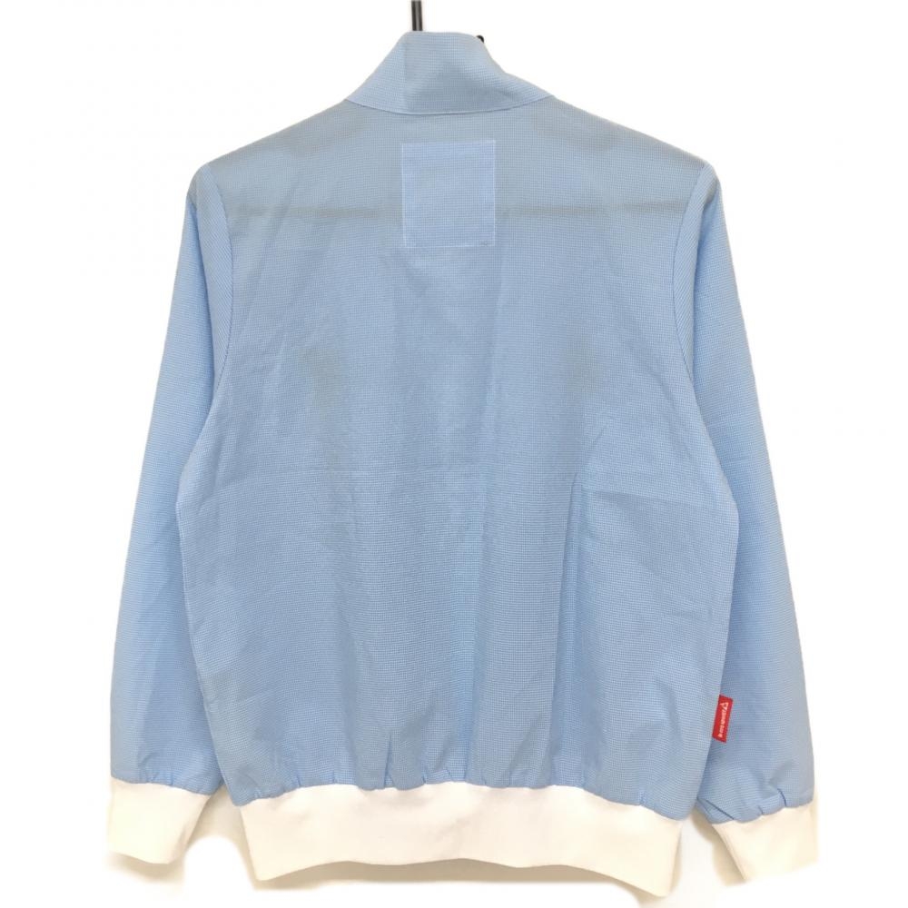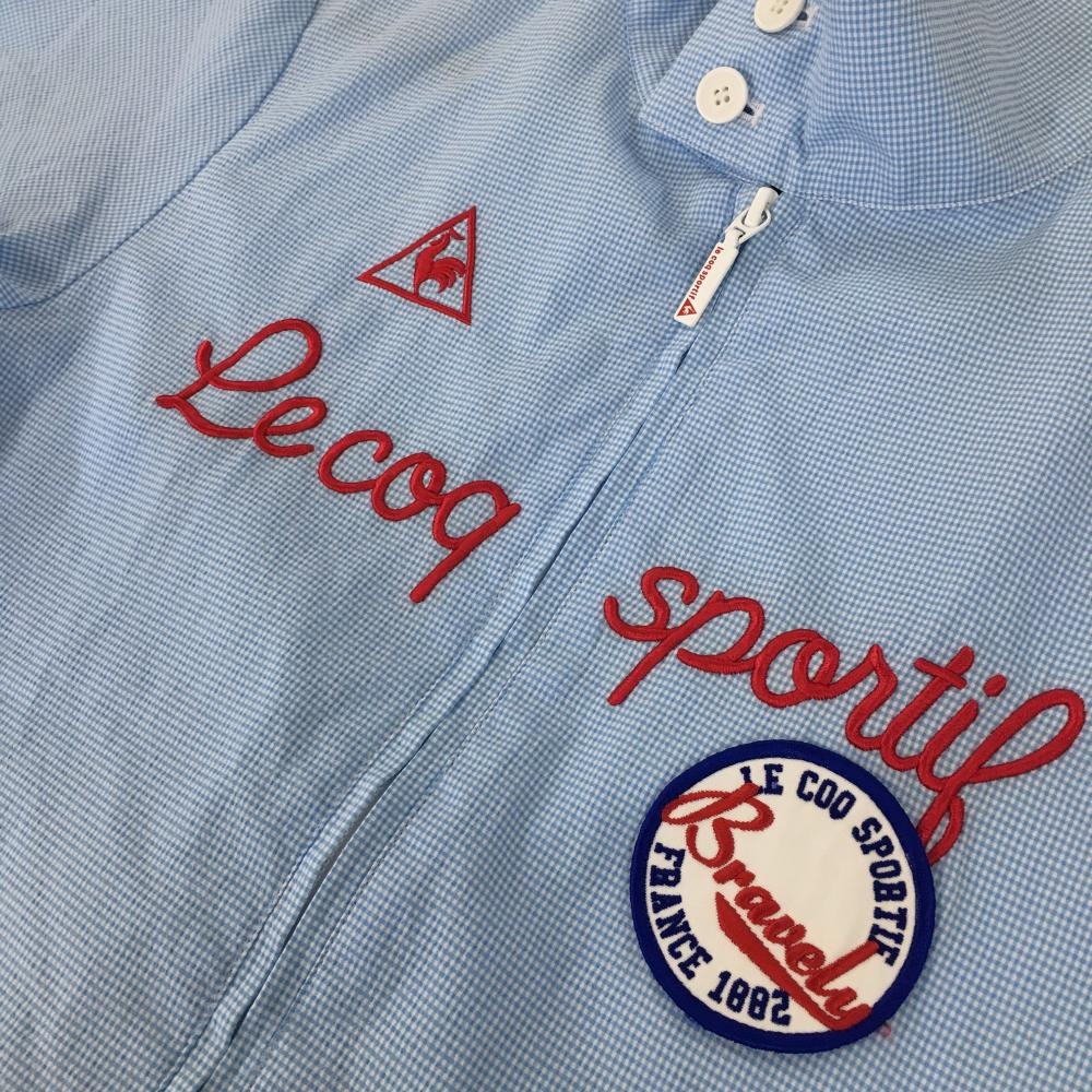 【超美品】ルコック ジャケットブルゾン ライトブルー×白 チェック ロゴ刺しゅう レディース M ゴルフウェア le coq sportif