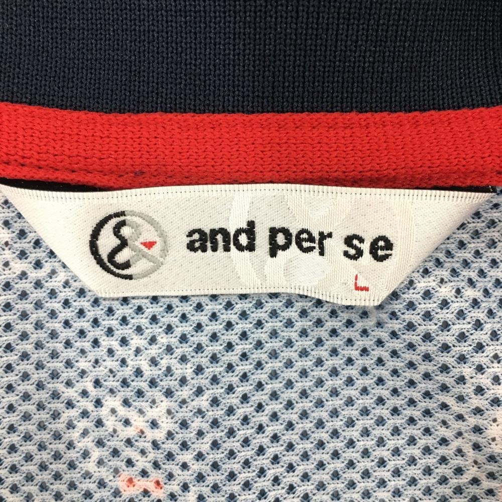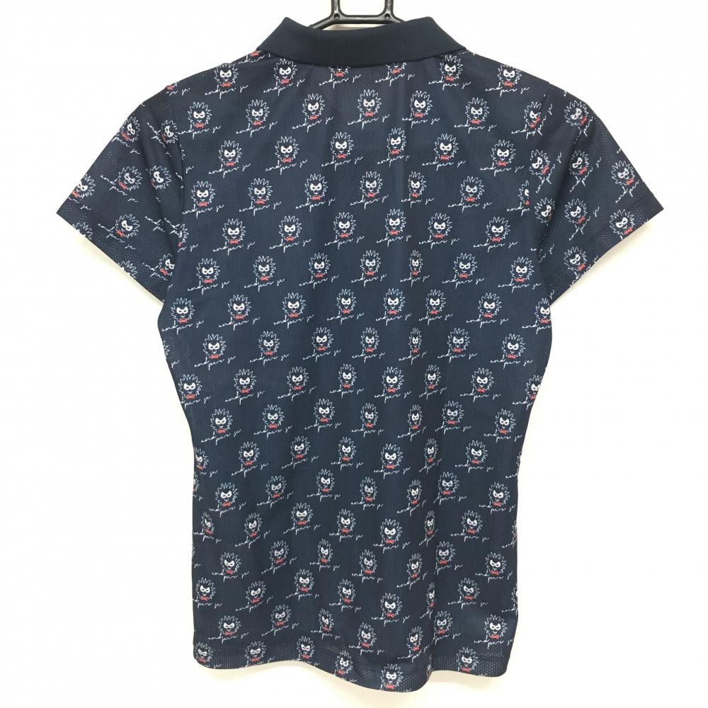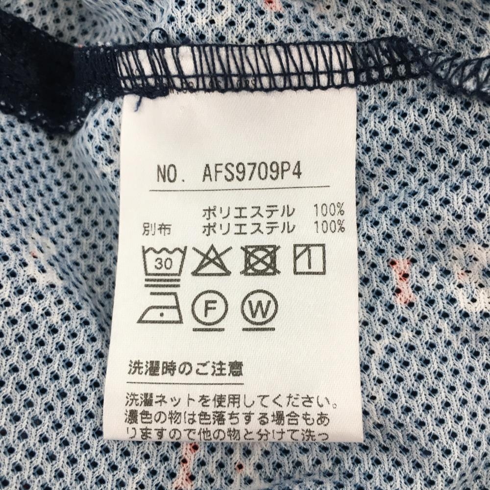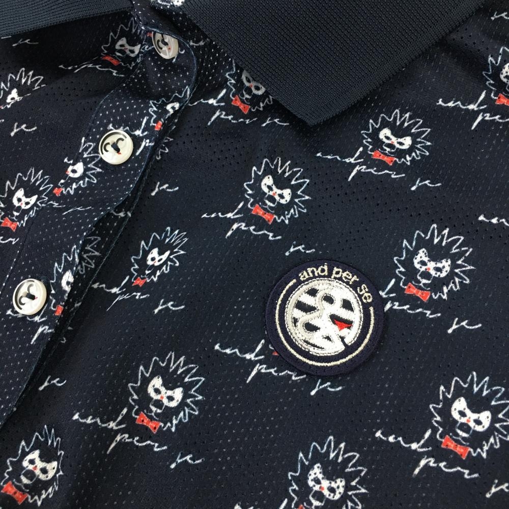 【超美品】アンパスィ 半袖ポロシャツ ネイビー×白 総柄 メッシュ生地 ワッペン レディース L ゴルフウェア and per se