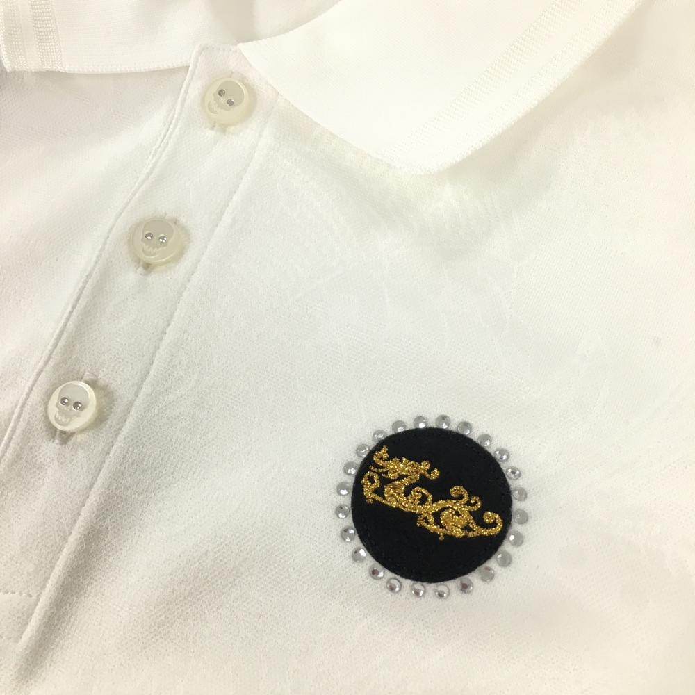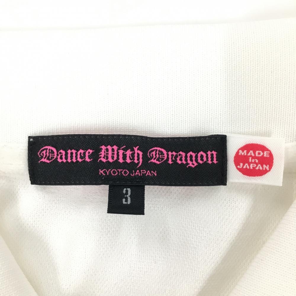 ダンスウィズドラゴン 半袖ポロシャツ 白 総柄織生地 ラインストーン レディース 3(L) ゴルフウェア Dance With Dragon