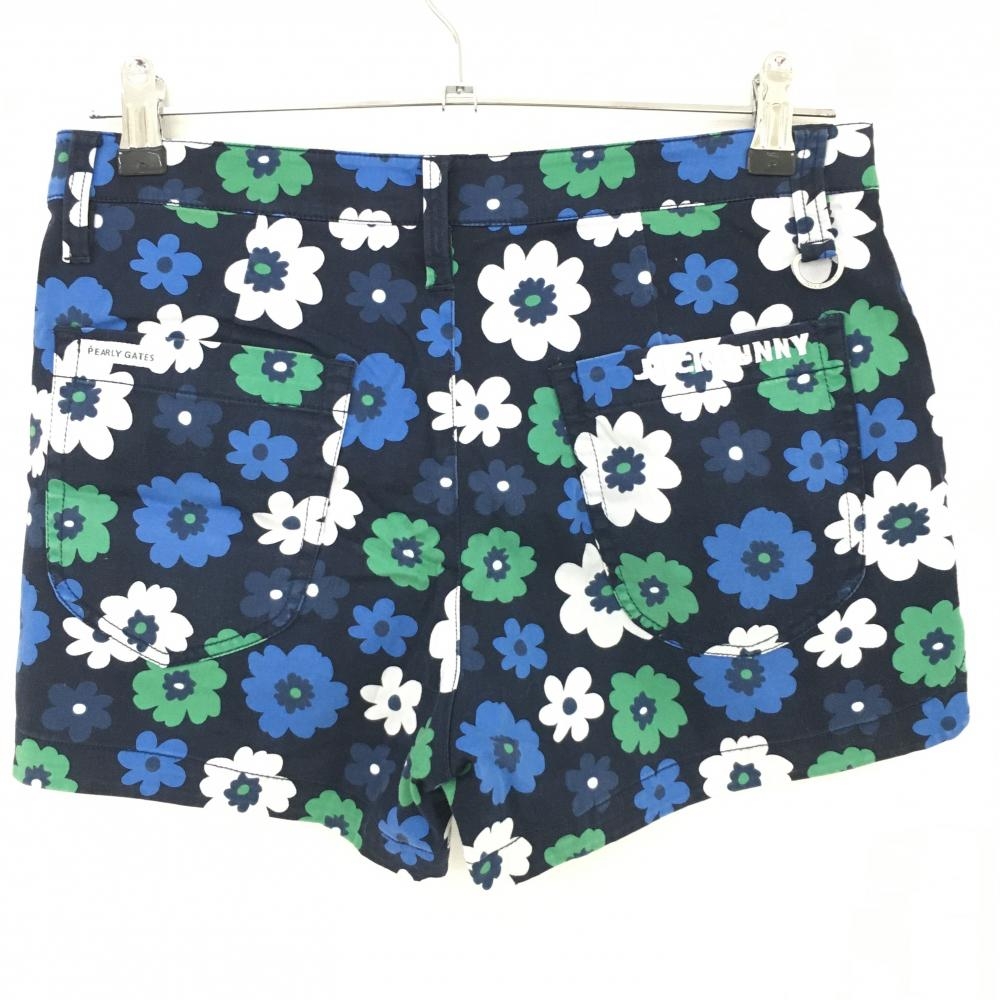 ジャックバニー ショートパンツ ネイビー×ブルー 花柄 バックロゴ刺しゅう 色褪せ レディース ゴルフウェア Jack Bunny