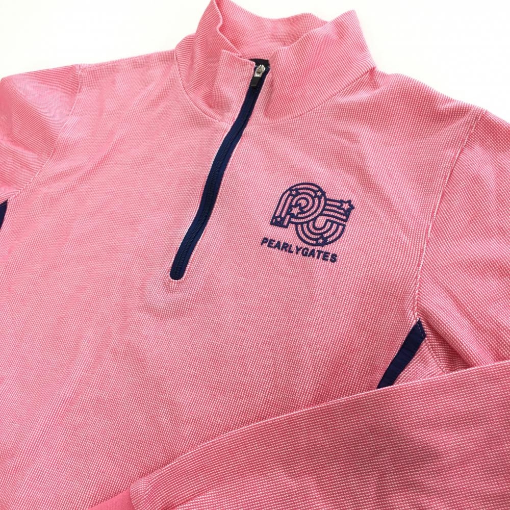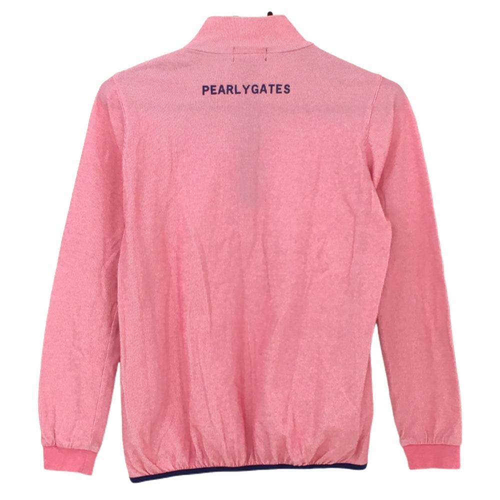 パーリーゲイツ 長袖ハイネックシャツ ピンク×白 織生地 ハーフジップ レディース 0(S) ゴルフウェア PEARLY GATES