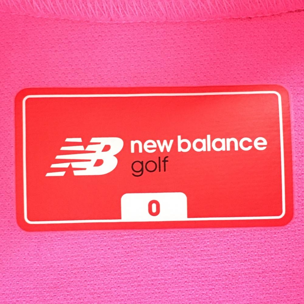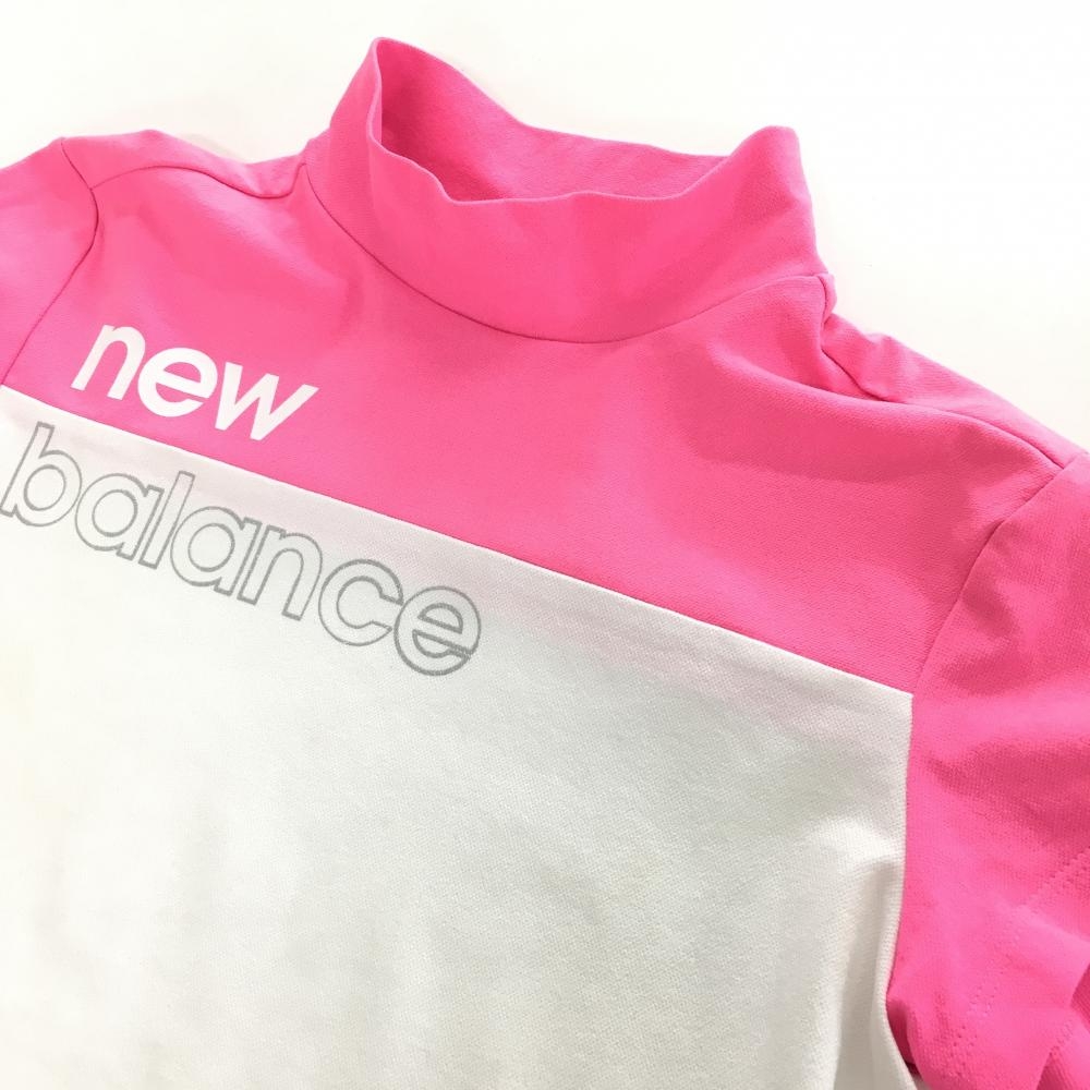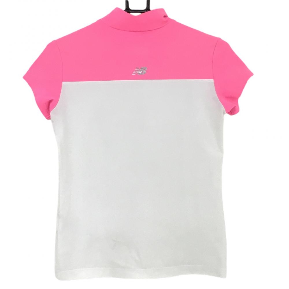 【美品】ニューバランス 半袖ハイネックシャツ ピンク×白 ロゴラメ入り レディース 0(S) ゴルフウェア 2022年モデル New Balance