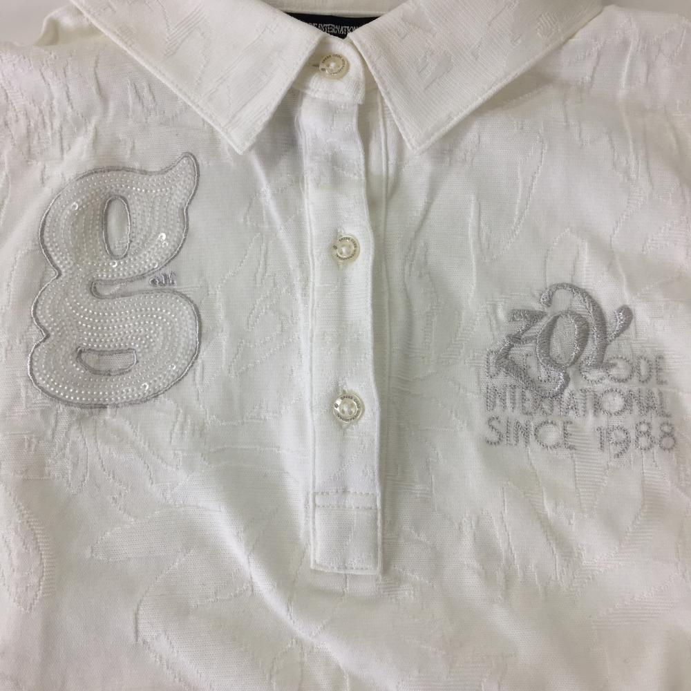 【美品】ゾーイ 半袖ポロシャツ 白 総柄 織生地 ロゴ刺しゅう レディース 36(S) ゴルフウェア ZOY