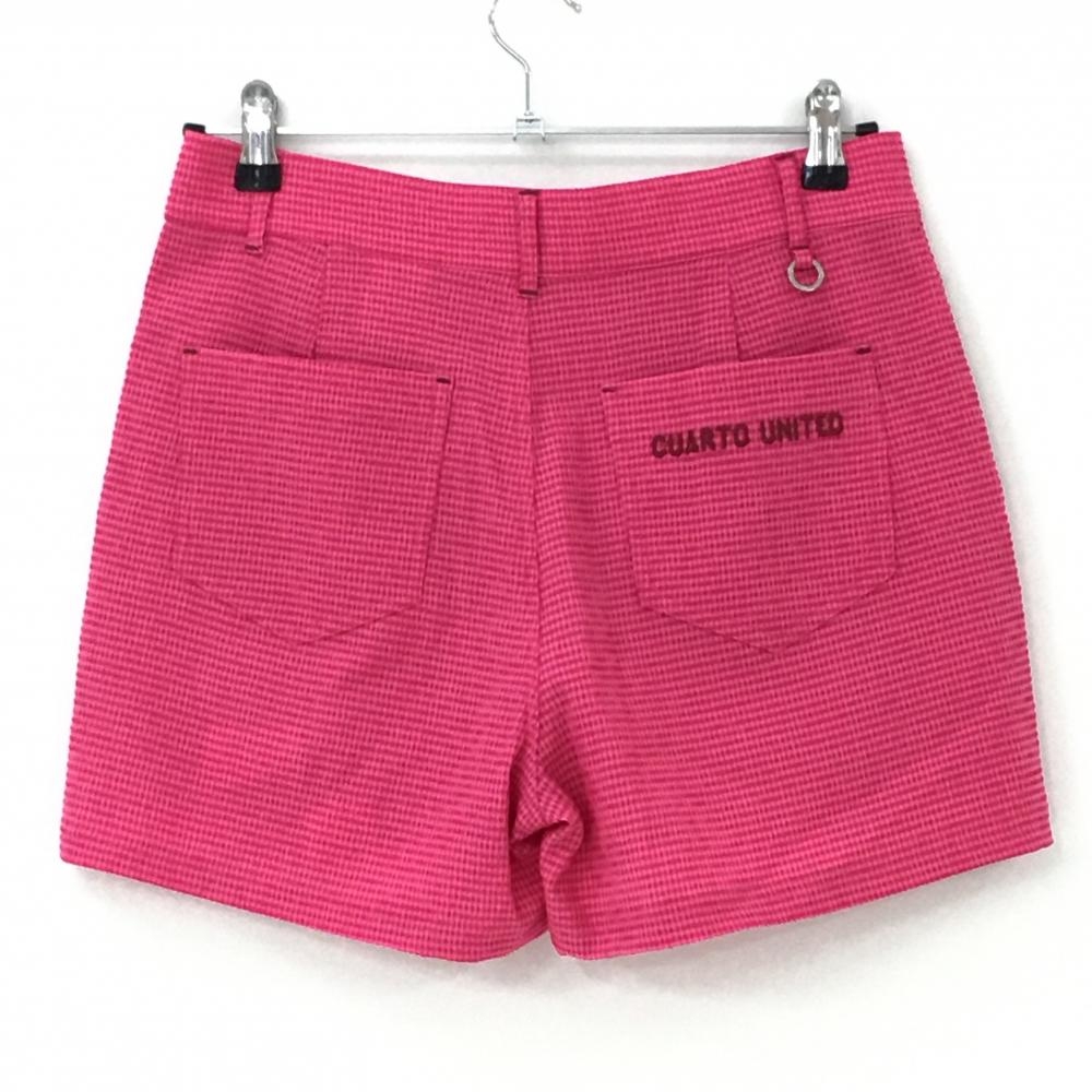 【超美品】クアルトユナイテッド ショートパンツ ピンク チェック サッカー生地 レディース L ゴルフウェア CUARTO UNITED