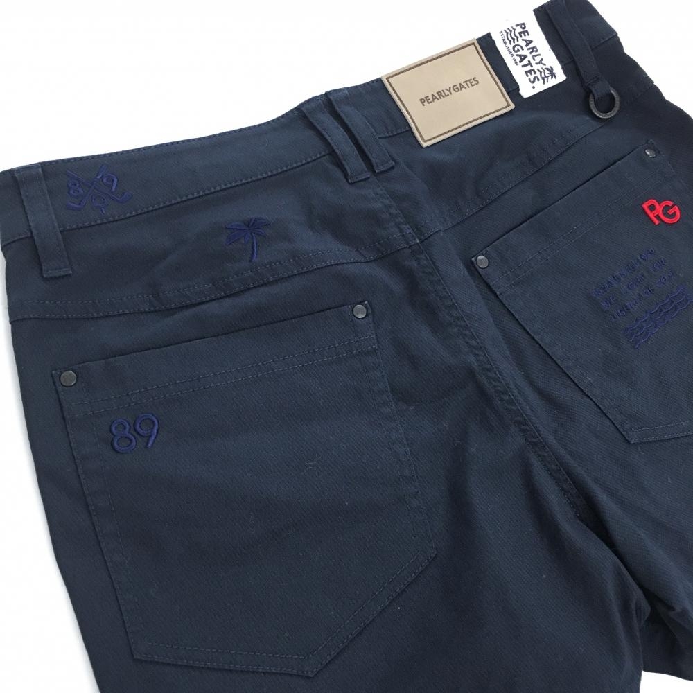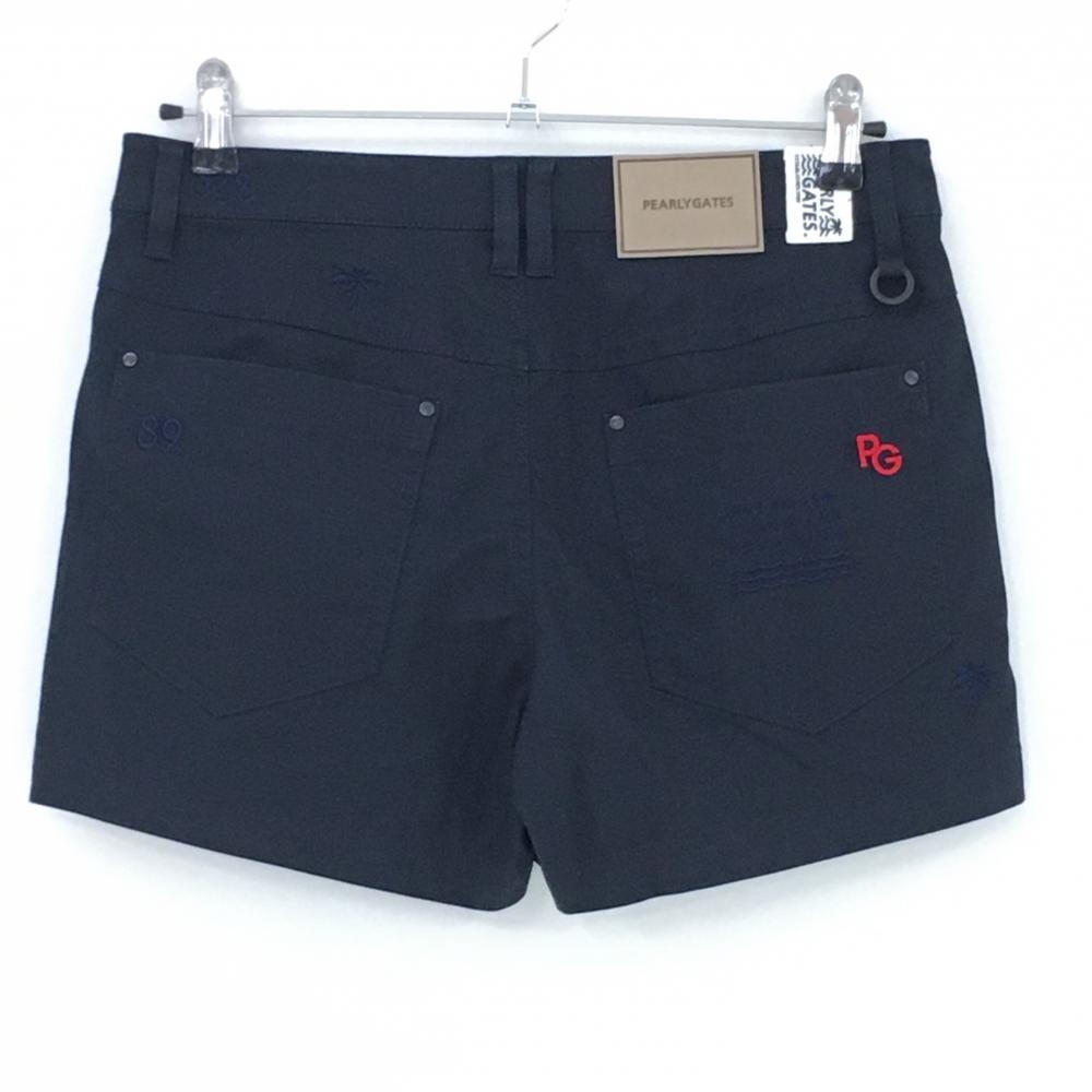 【超美品】パーリーゲイツ ショートパンツ ダークネイビー 織生地 ロゴレッド レディース 1(S) ゴルフウェア 2023年モデル PEARLY GATES