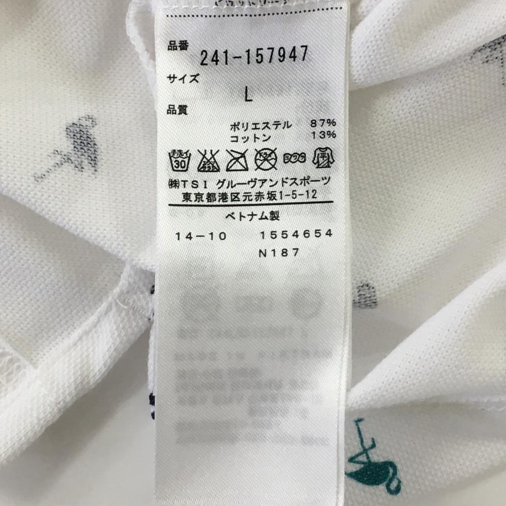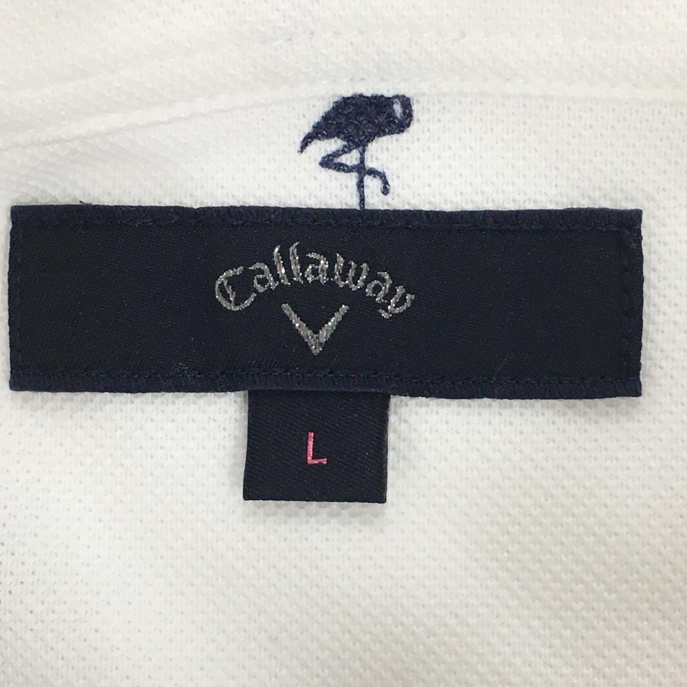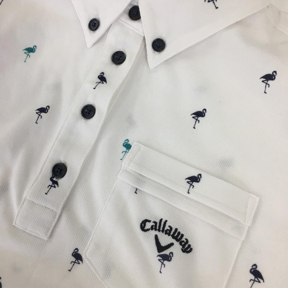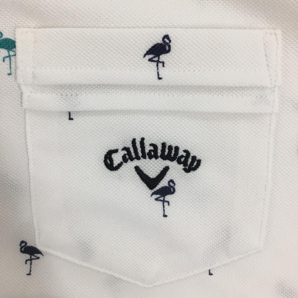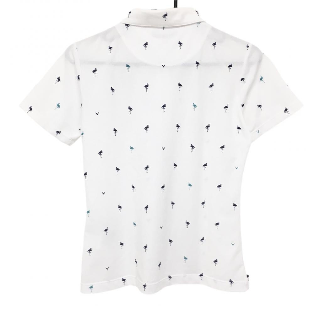 【美品】キャロウェイ 半袖ポロシャツ 白×ネイビー フラミンゴ柄 ロゴ刺しゅう レディース L ゴルフウェア Callaway