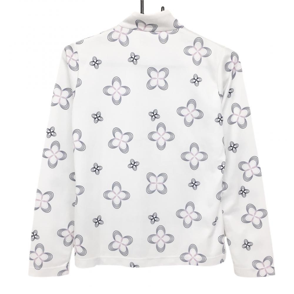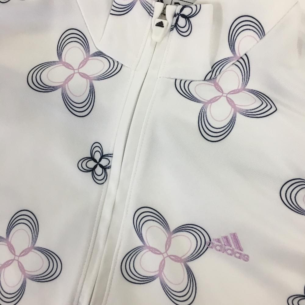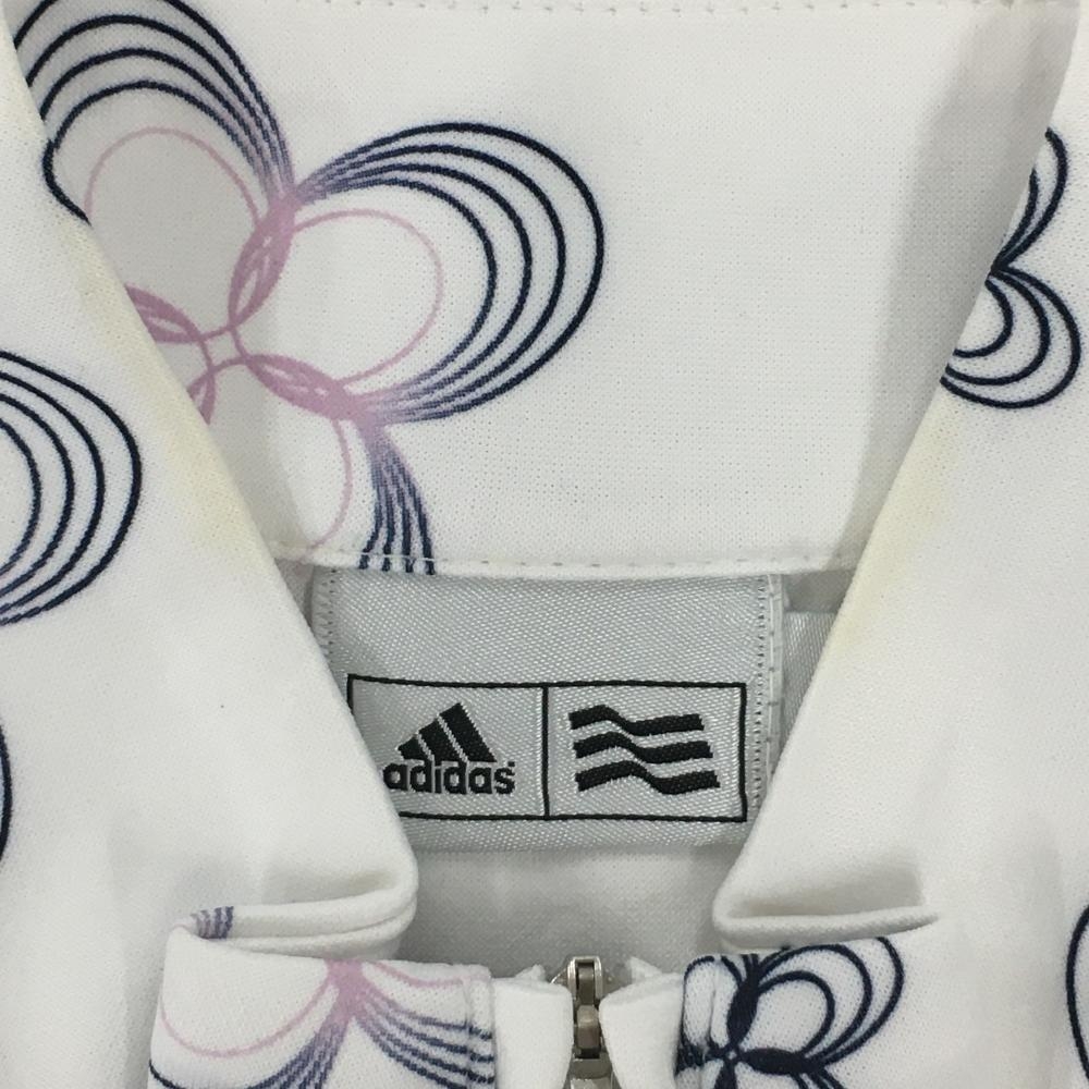 アディダス 長袖ハイネックシャツ 白×ネイビー 花柄 ハーフジップ レディース M/M ゴルフウェア adidas