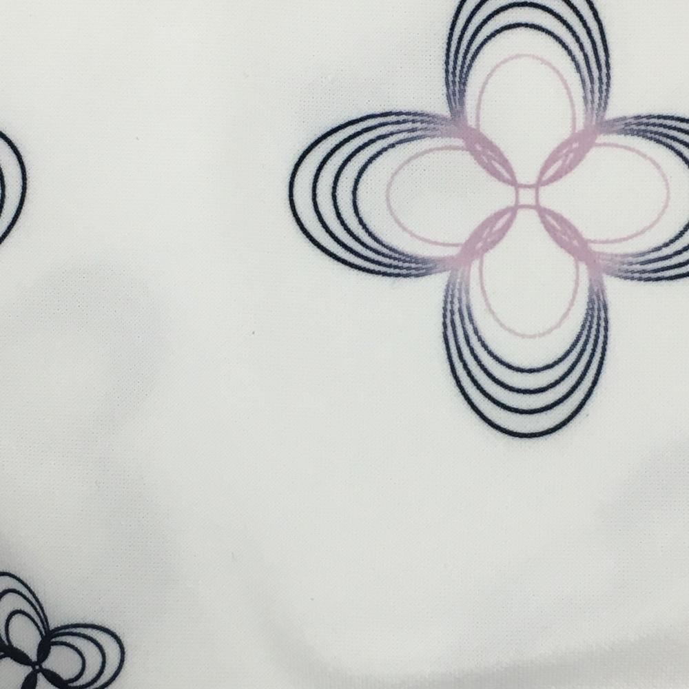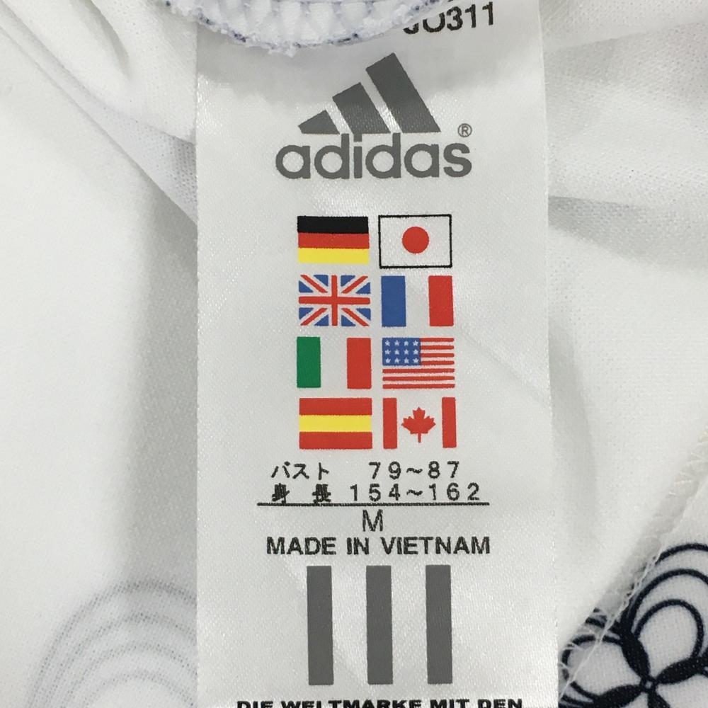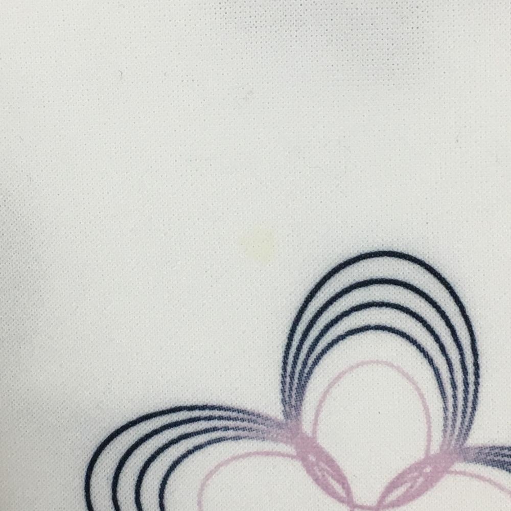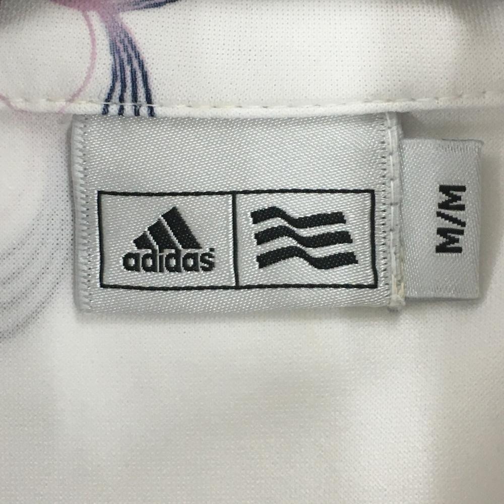 アディダス 長袖ハイネックシャツ 白×ネイビー 花柄 ハーフジップ レディース M/M ゴルフウェア adidas