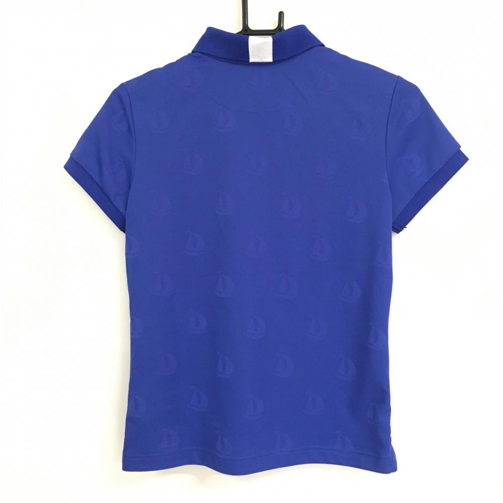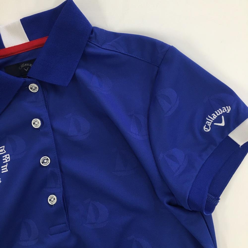 【超美品】キャロウェイ 半袖ポロシャツ ブルー ヨット柄織生地 レディース M ゴルフウェア Callaway