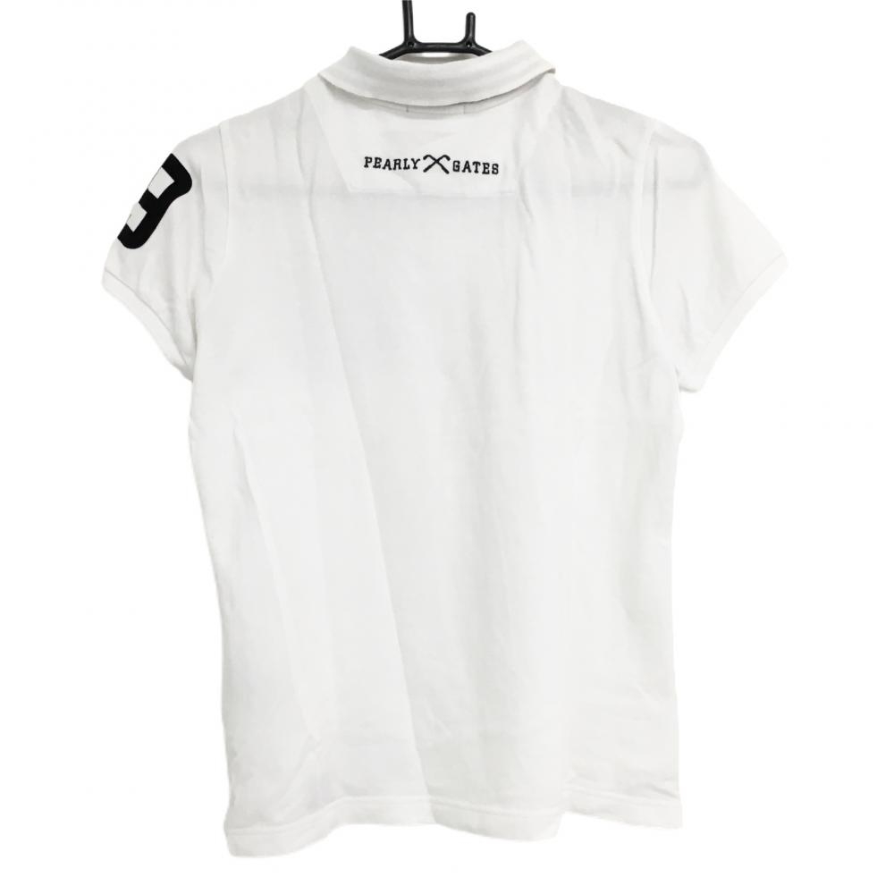 パーリーゲイツ 半袖ポロシャツ 白×黒 フロッキーロゴ レディース 0(S) ゴルフウェア PEARLY GATES
