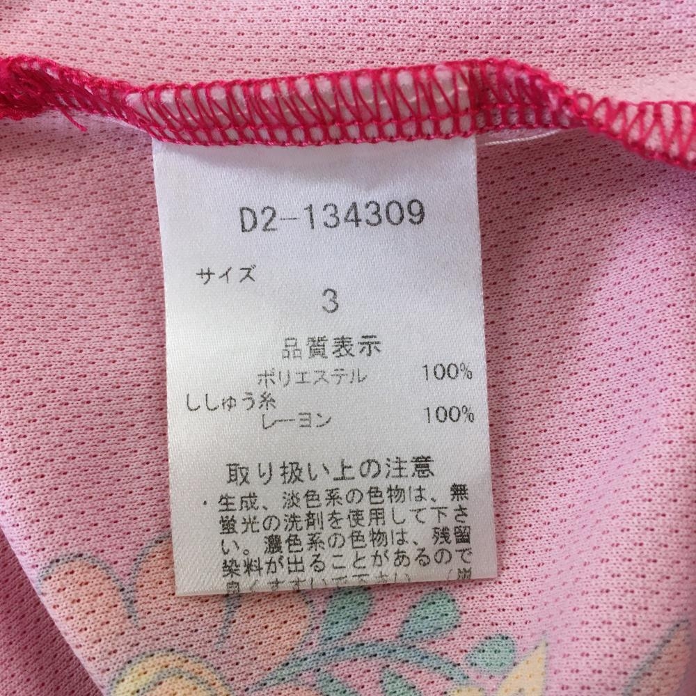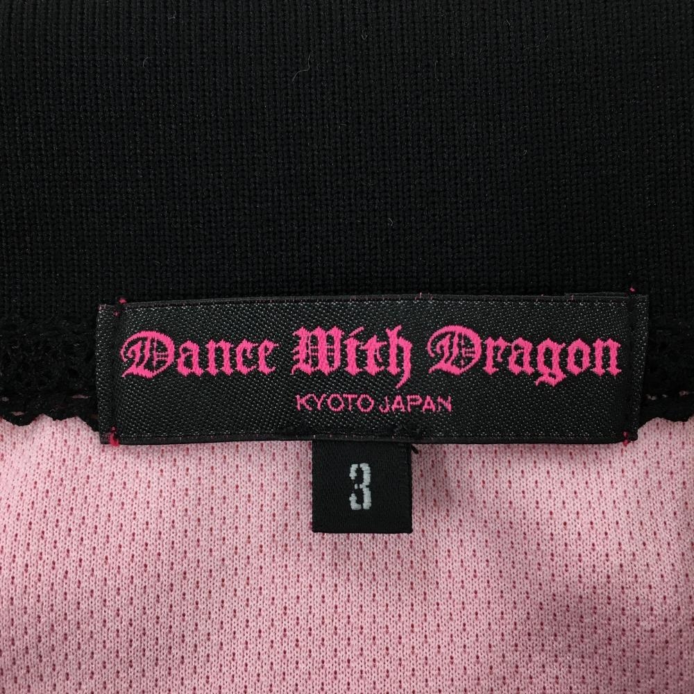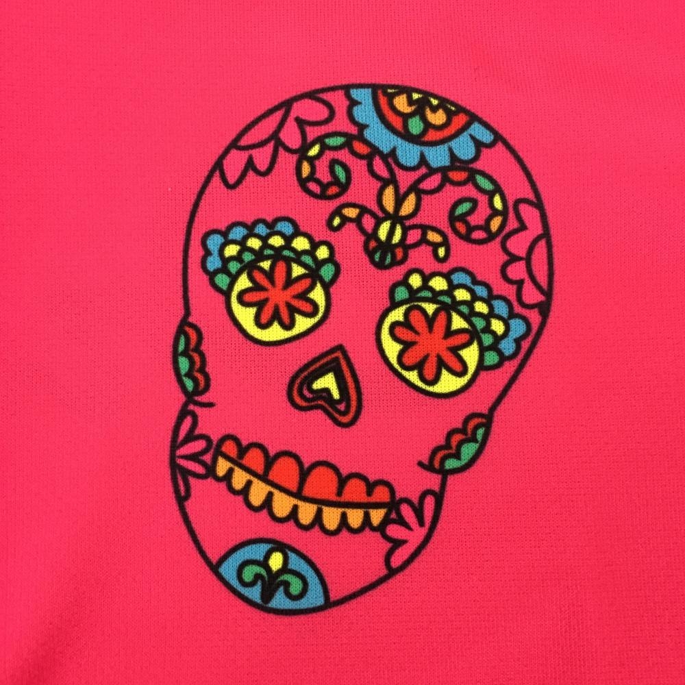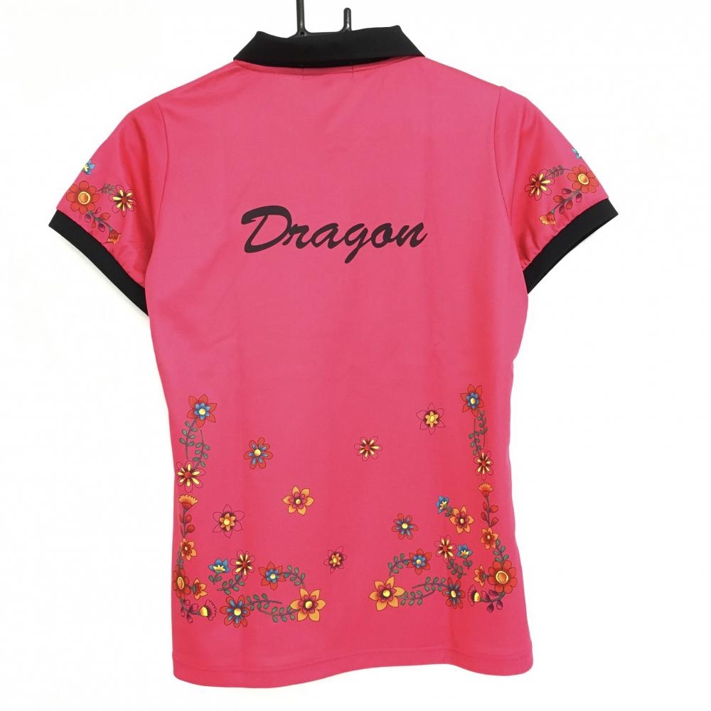 【超美品】ダンスウィズドラゴン 半袖ポロシャツ ピンク×マルチ 裾袖花柄 スカル レディース 3(L) ゴルフウェア Dance With Dragon