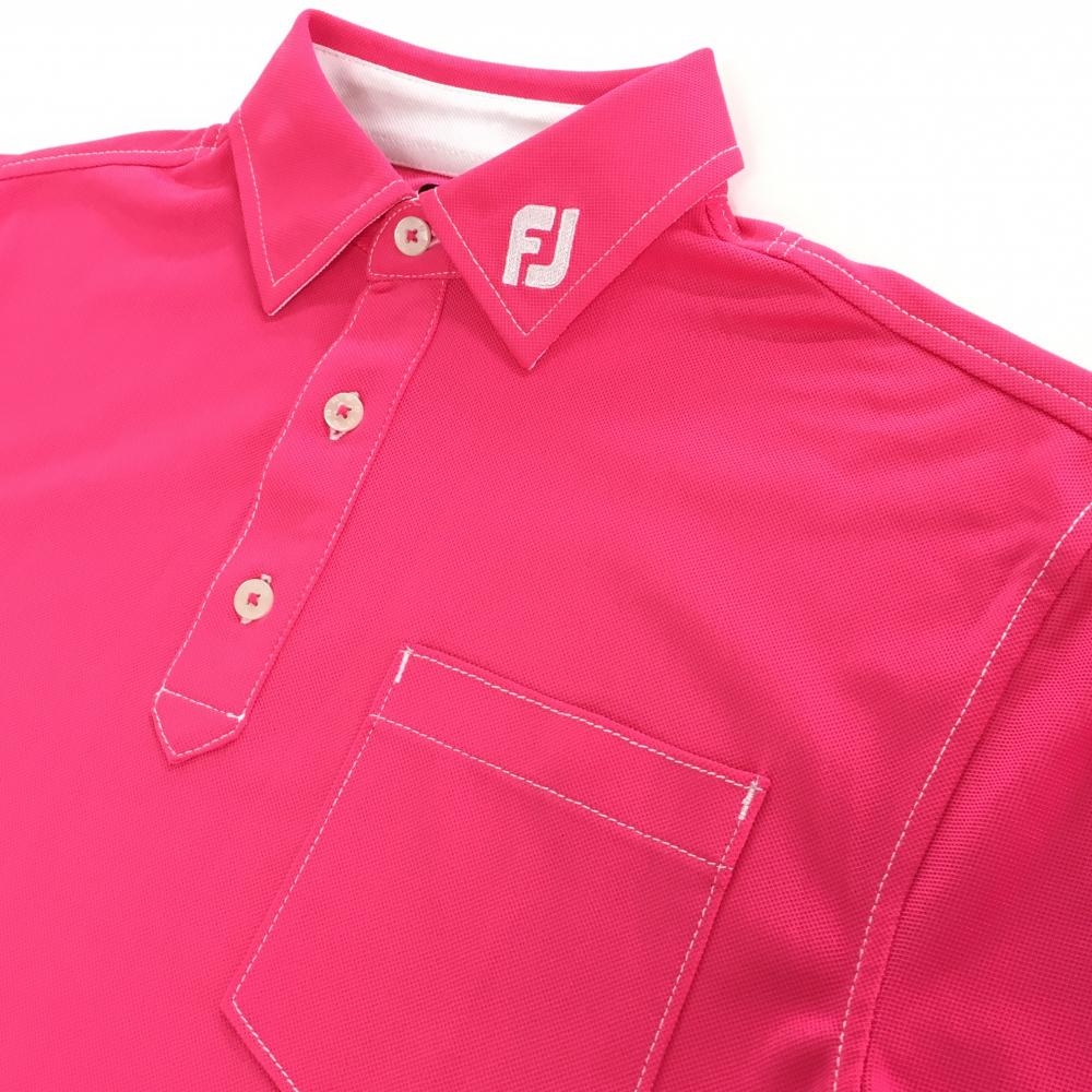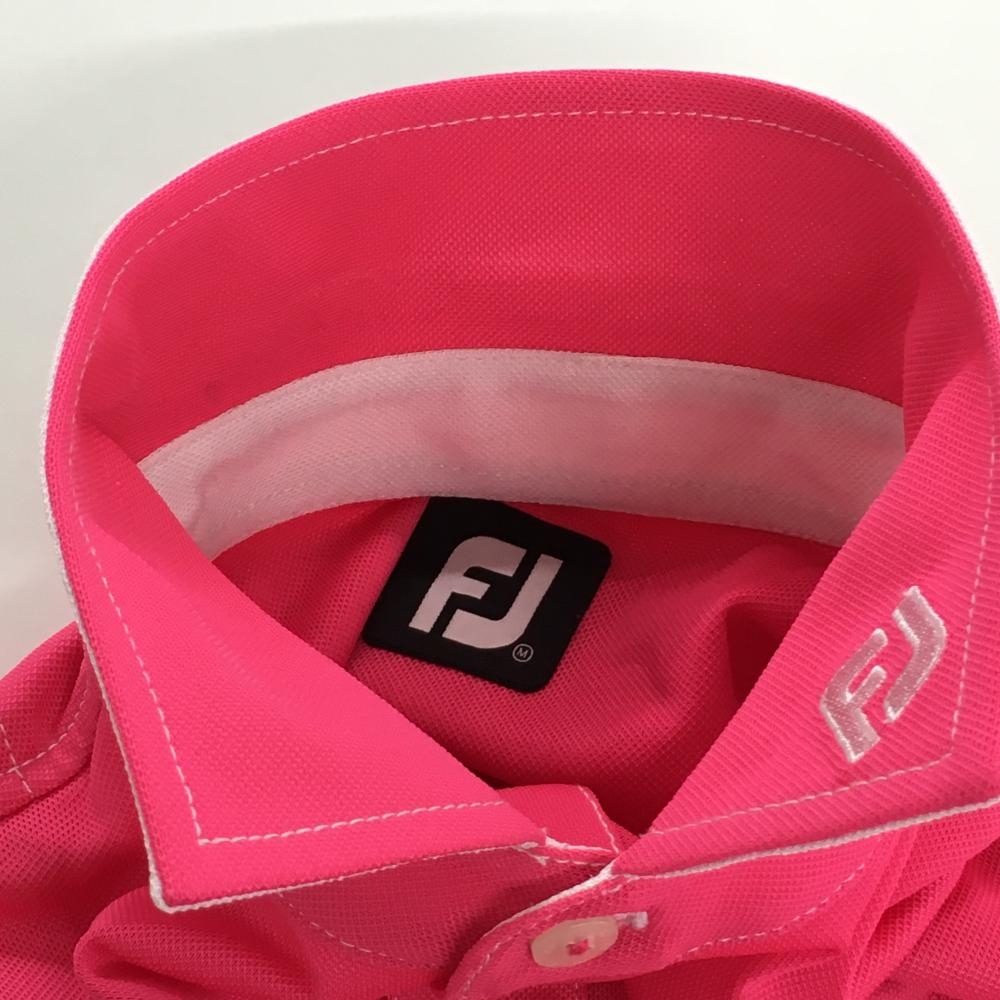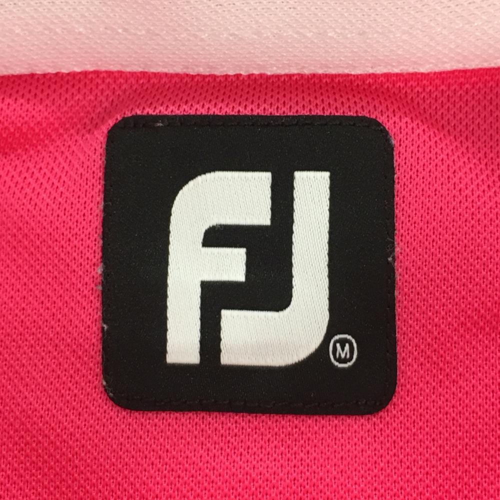 フットジョイ 半袖ポロシャツ ピンク×白 ステッチ 襟ロゴ 胸ポケット メンズ M ゴルフウェア FootJoy
